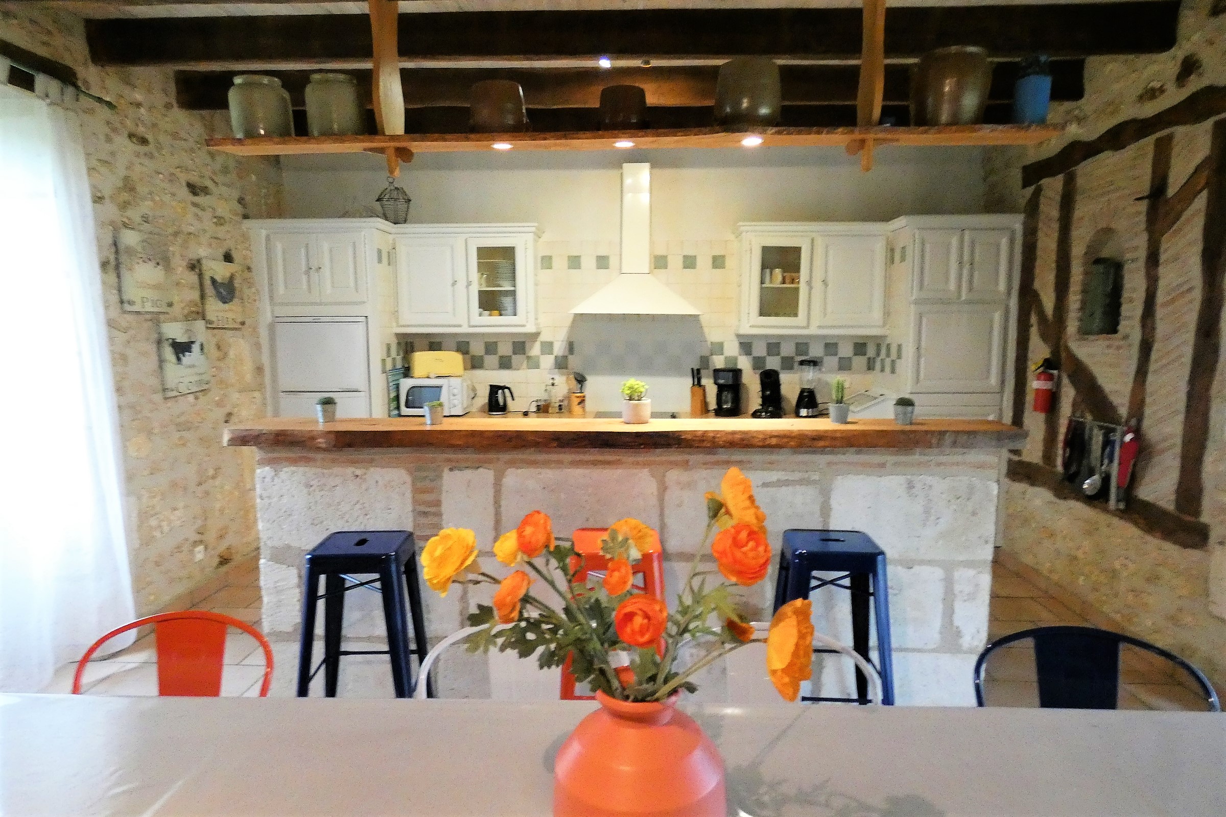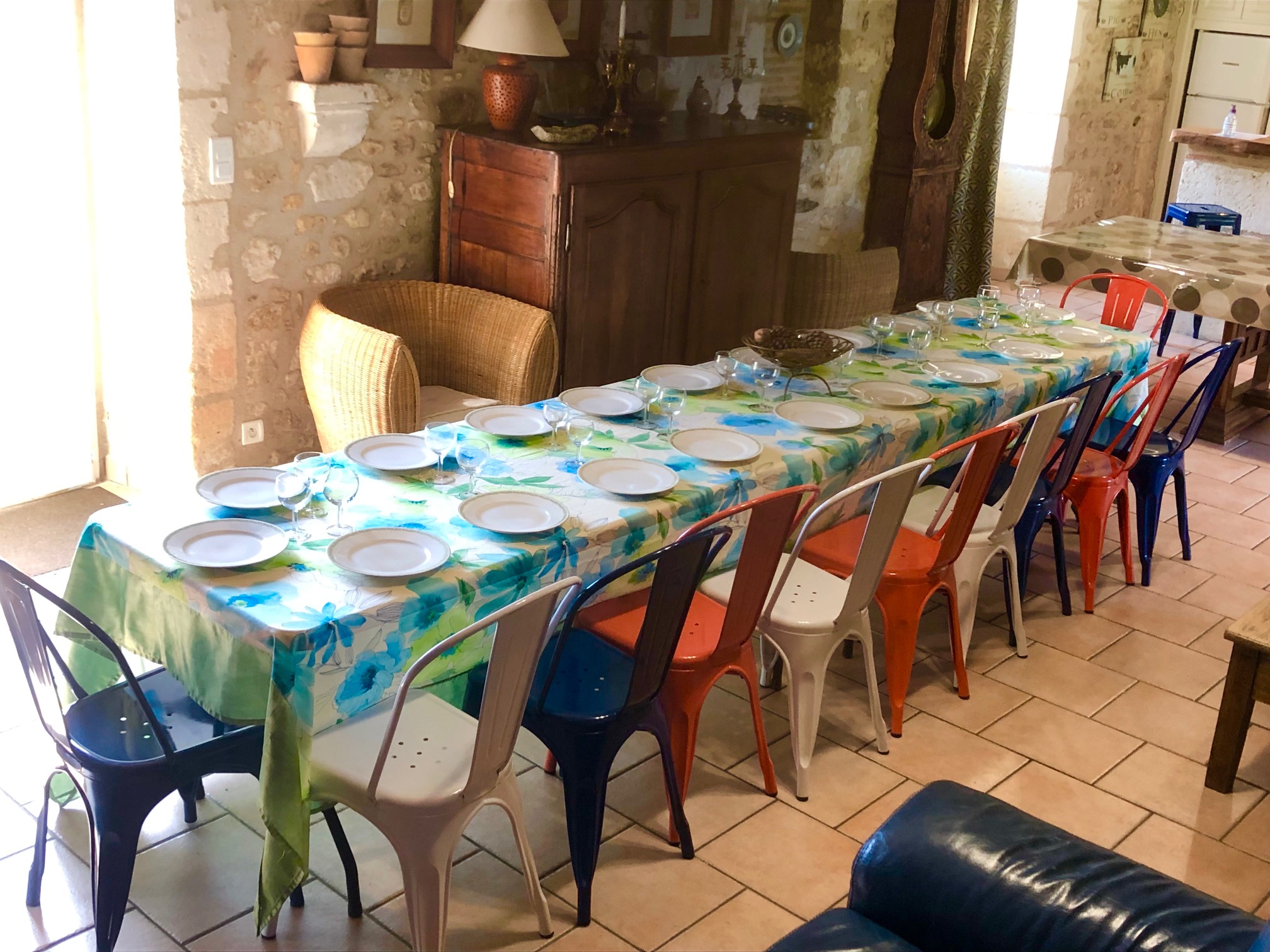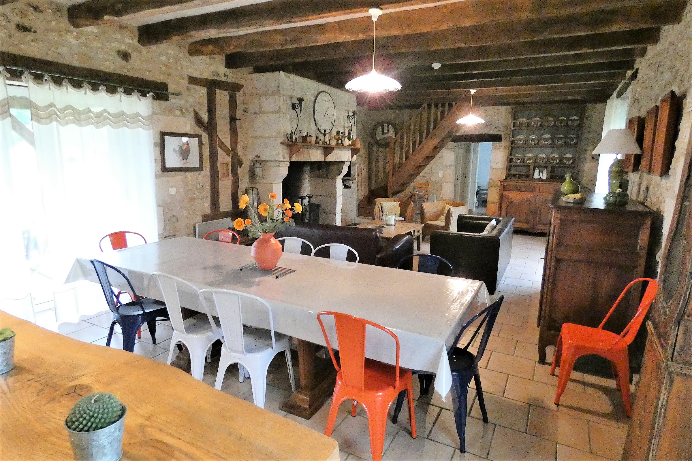 . Maison "Chez Félix" : 5 chambres dont 1 chambre avec un lit 160, 3 chambres avec 1 lit 140, 1 chambre avec 3 lits 90, 2 salles d'eau, 2 WC. Mais aussi 1 salon avec cheminée, 1 grande salle à manger avec table 12 personnes (possibilité de deuxième table pour manger à une vingtaine de personnes), coin cuisine équipée avec bar.