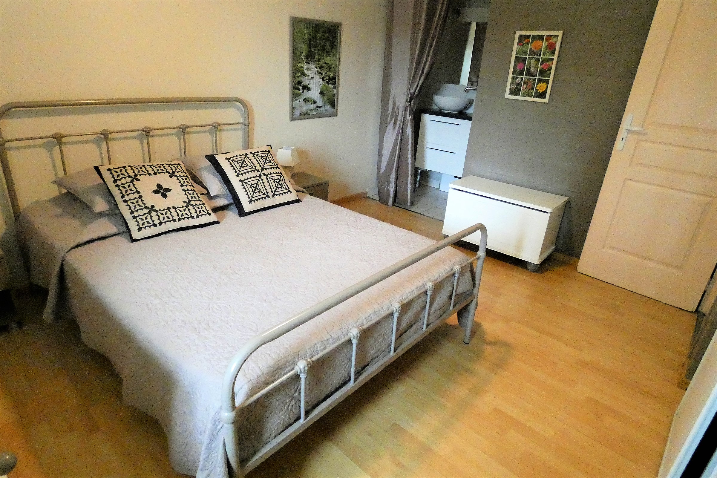 . Maison "Le Pavillon" : 4 chambres dont 1 chambre avec 1 lit 160, 1 chambre avec 1 lit 140, 2 chambres avec 1 lit 140 et 1 lit 90, 2 salles d'eau, 3 WC. Mais aussi 1 salon avec cheminée, 1 salle à manger avec table 8/10 personnes, 1 cuisine équipée avec table 4 personnes, 1 terrasse surélevée équipée d'un salon de jardin en bois pour 8 personnes avec superbe vue sur la campagne.