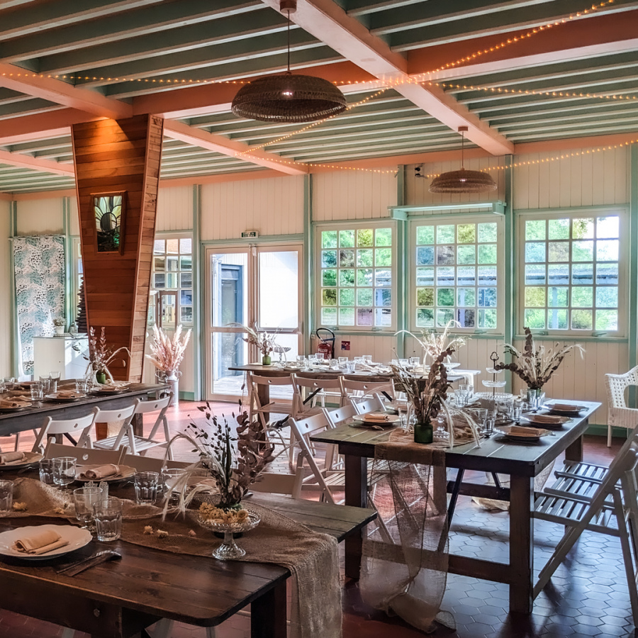 La capacité d’accueil pour les événements privés tels qu’un mariage, un anniversaire ou une cousinade est de 100 personnes pour la salle de réception et l’hébergement de tous les invités.