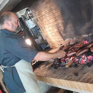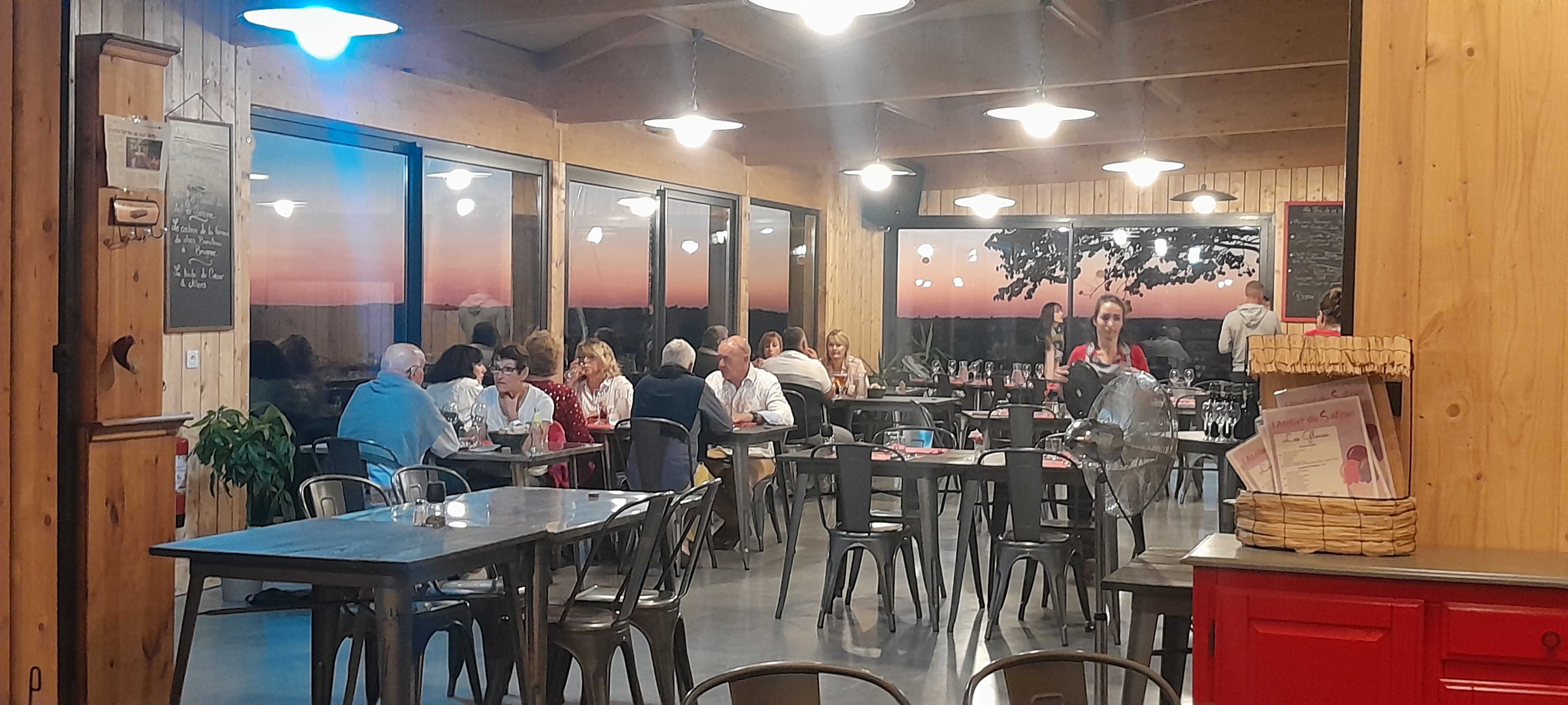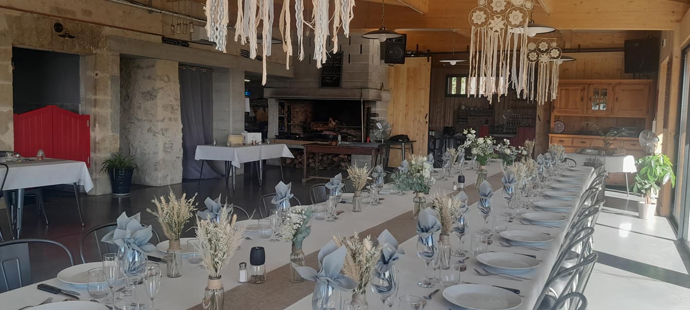 -L'Auberge du cheval blanc 120m2 + jardin/terrasse (120convives assis): salle entièrement vitrée avec vue panoramique, cheminée de cuisson, et un service restauration complet. Les menus sont élaborés avec des produits frais et locaux, la cuisine est maison et généreuse.