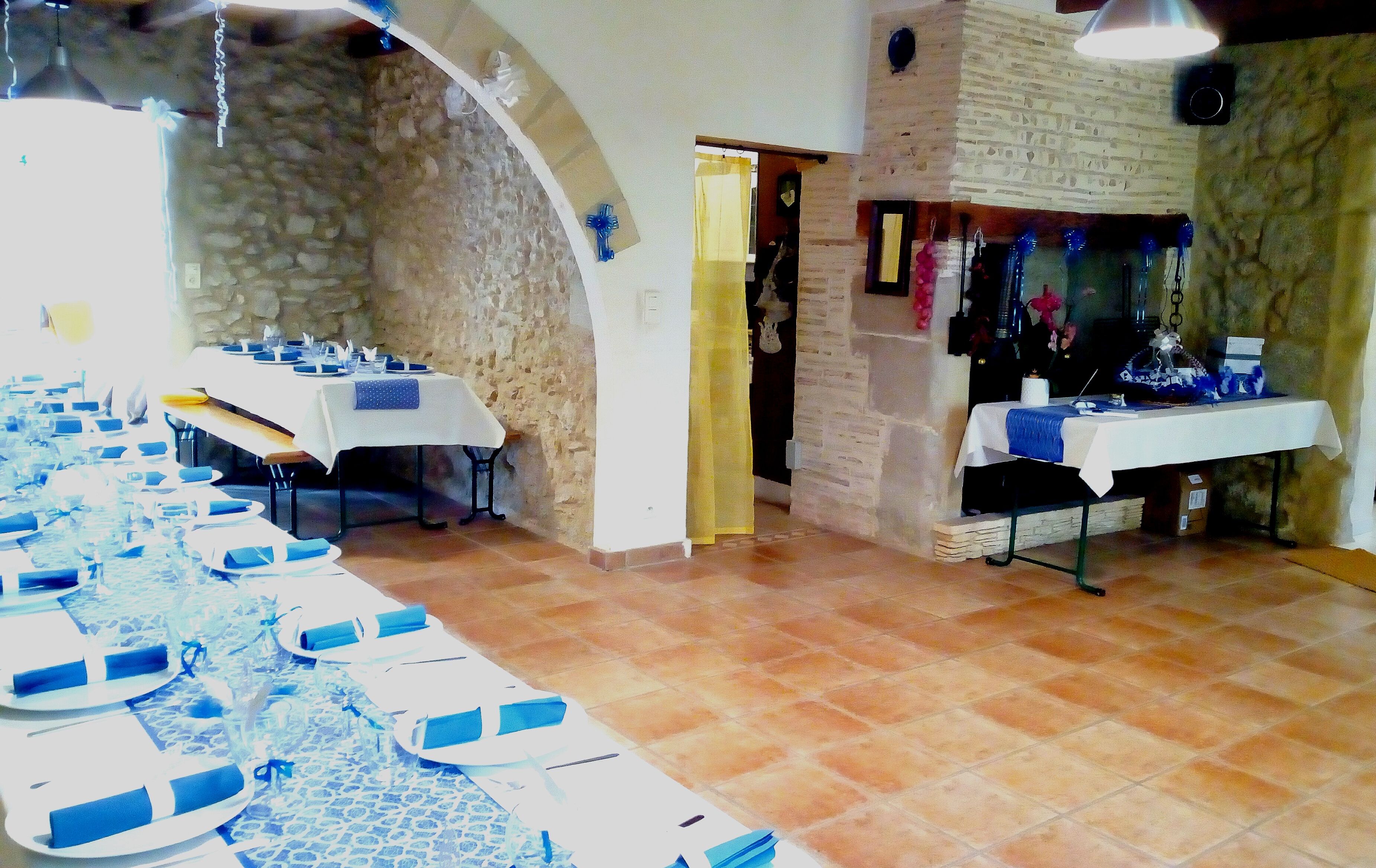 -Le salon Djebel de plus 60m2 (45 convives assis): le charme de la pierre et du bois, climatisé, ouvert sur une terrasse et un jardin bucolique à la vue imprenables. Vaisselle, tables, bancs, et cuisine d'été attenante.