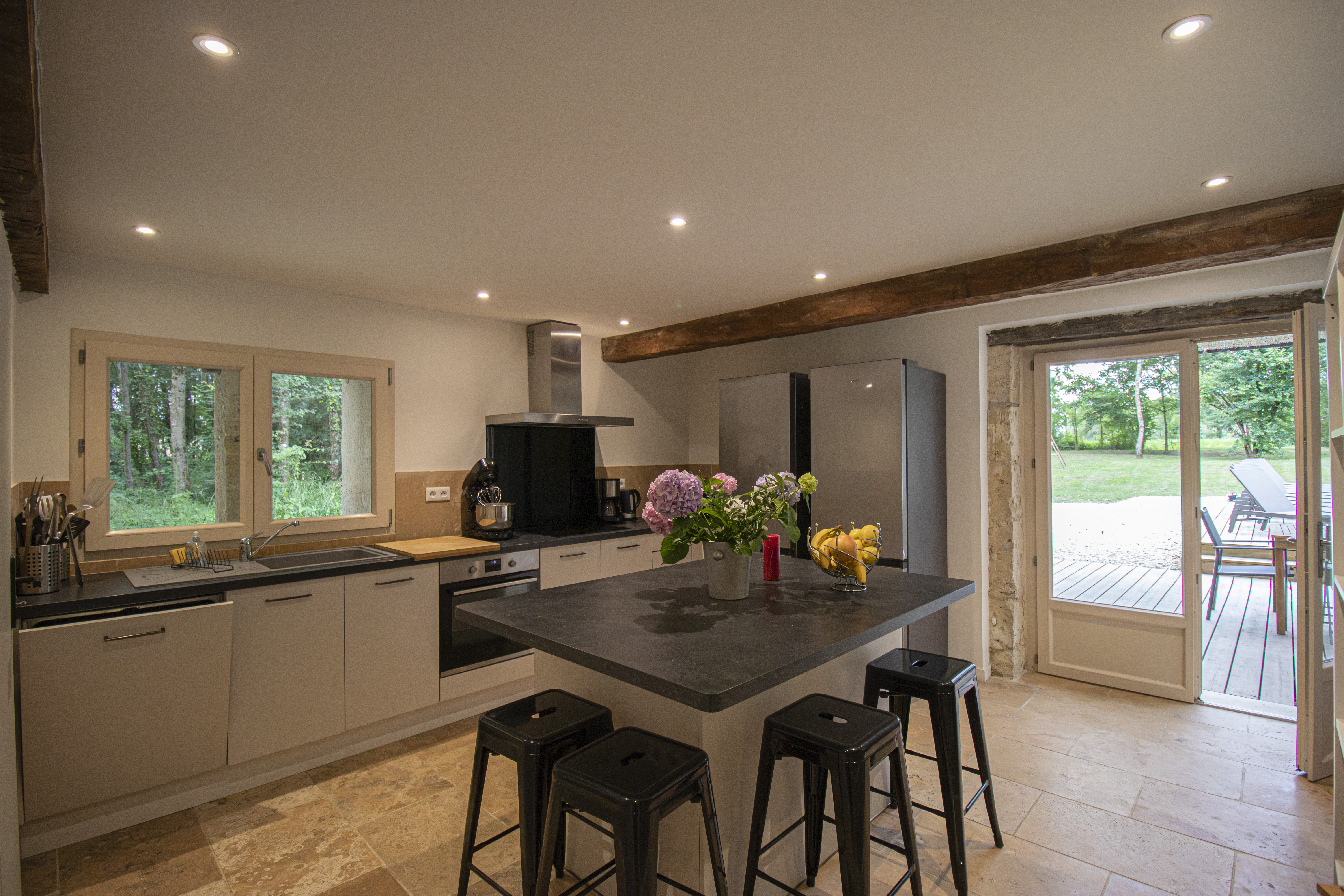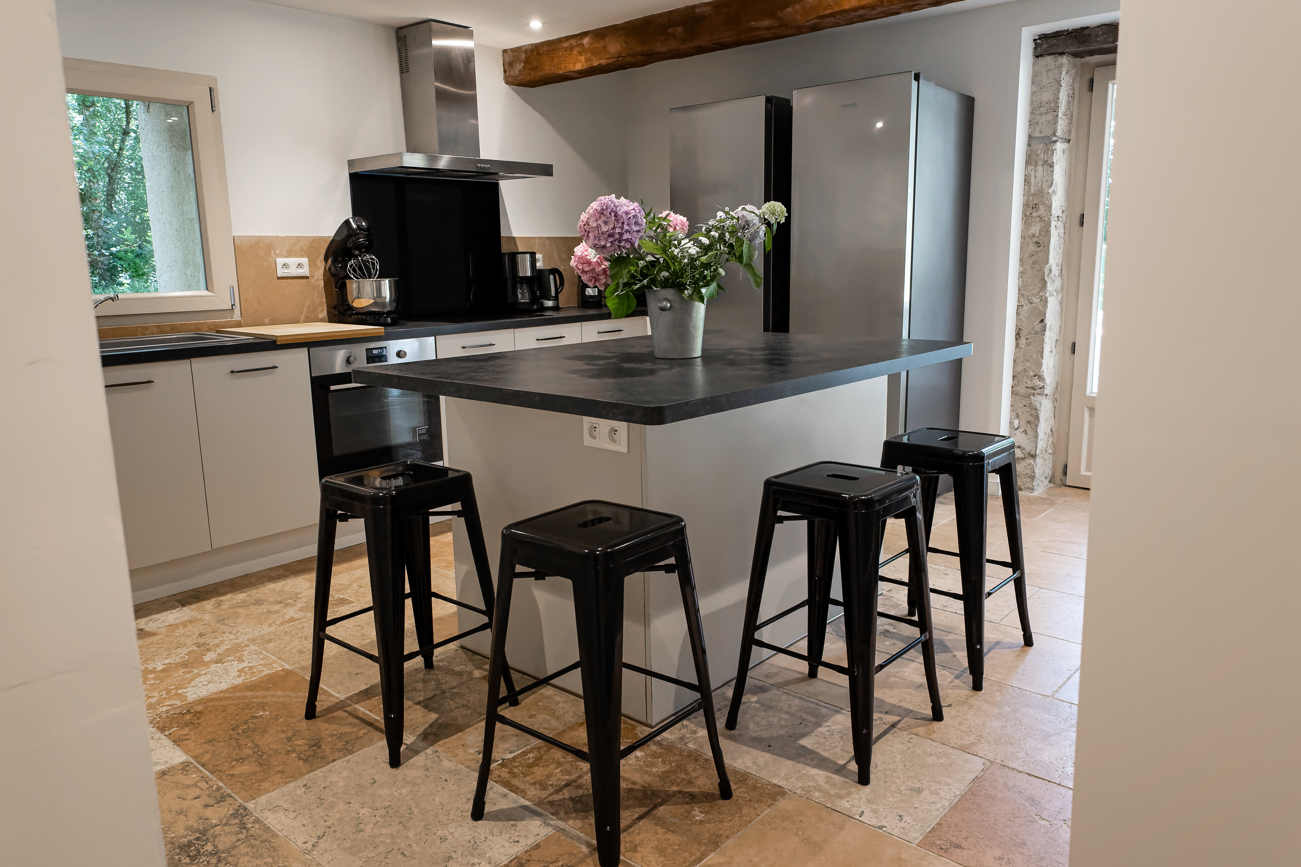 – Cuisine ultra-équipée : 2 réfrigérateurs, lave-linge, sèche-linge, robot pâtissier, vaisselle pour grands groupes, cafetières Nespresso et filtre