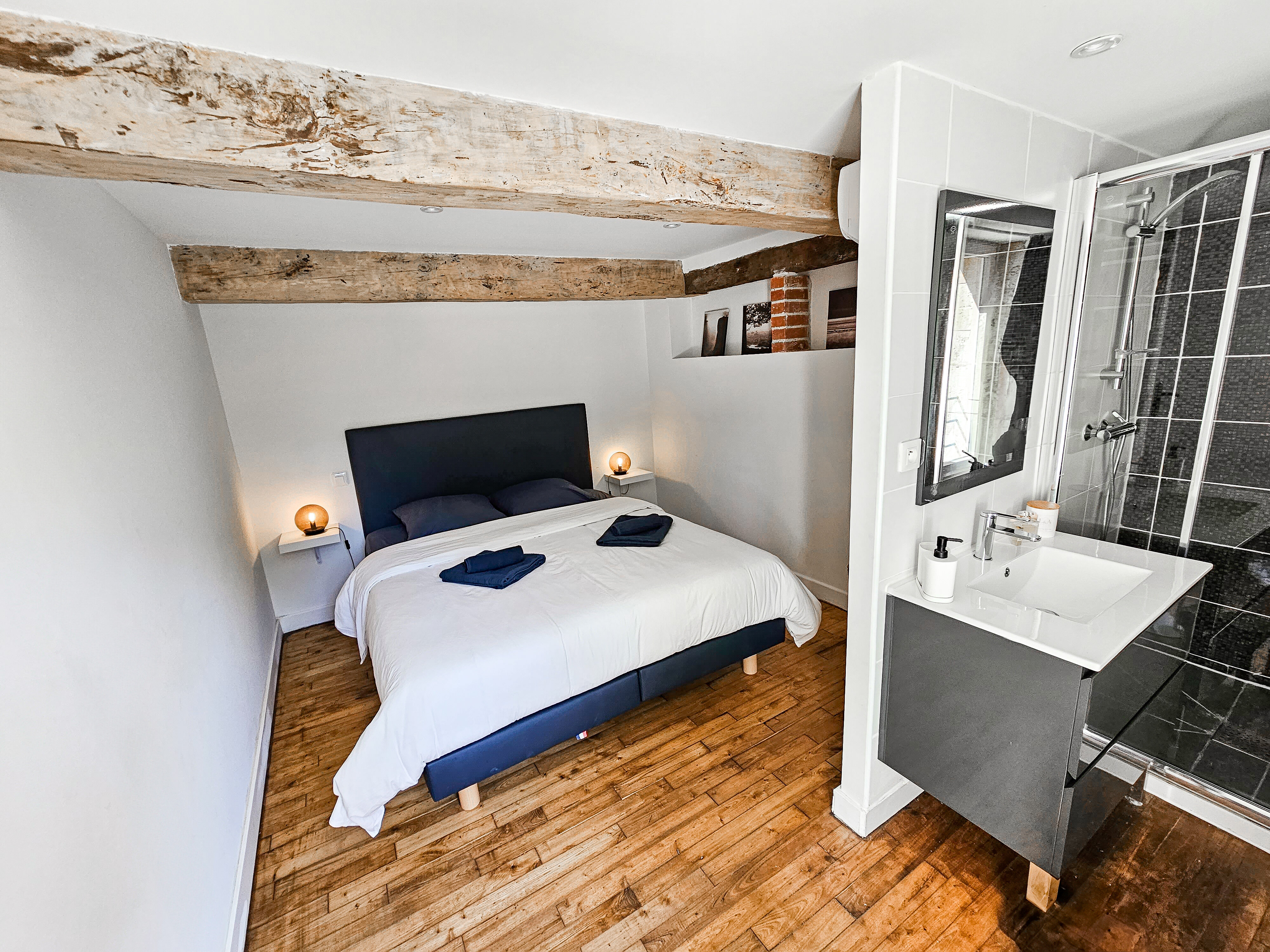 – 4 chambres doubles (160x200), chacune avec salle de bain privative
