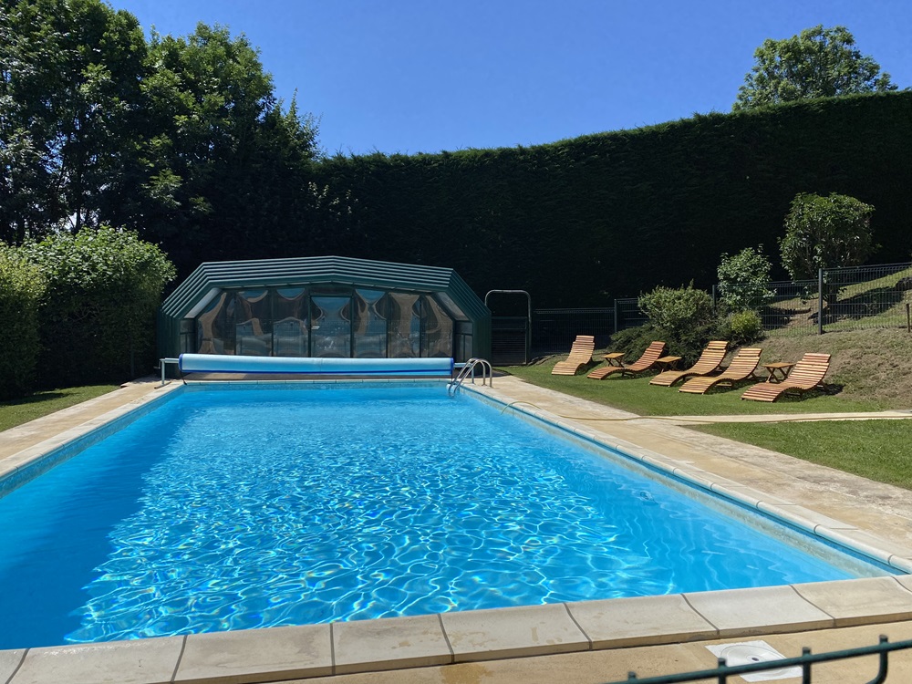 piscine (couverte et sécurisée) de 11 x 5 m, terrain de jeux rustique, balançoires, bac à sable, terrain de boule, tennis, volley, badminton.