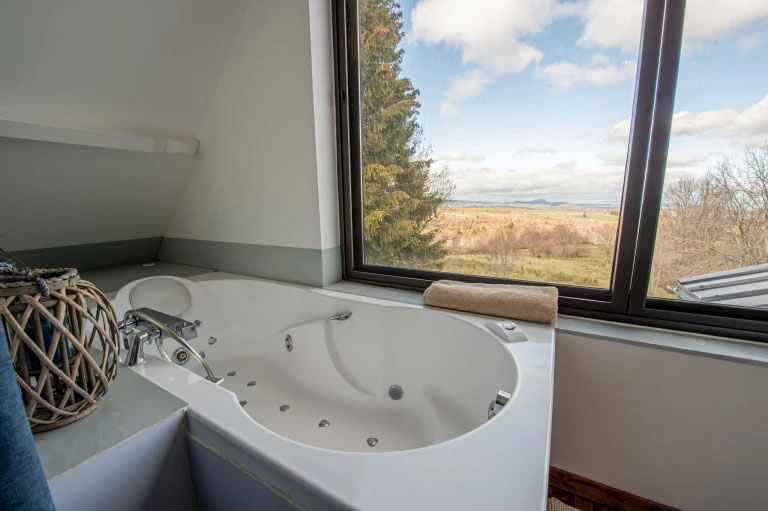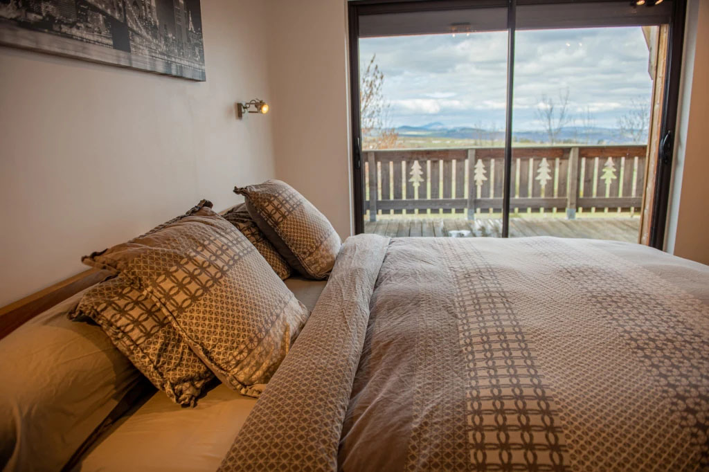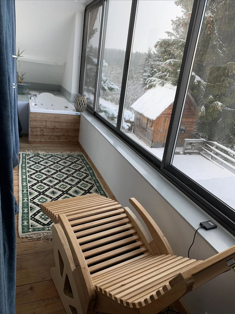 Le Chalet : 230 m² pour 14 personnes, comprenant 6 chambres, 3 salles de bains et un jacuzzi avec vue panoramique.