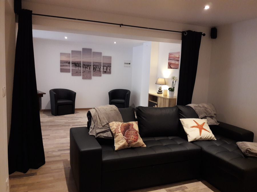 Grand gite spacieux et lumineux à 600 m du centre de Honfleur et de son célèbre port le "Vieux Bassin" ainsi que de la "Lieutenance", la capacité d'accueil est de 14 et plus s'il y a des bb (2 lits parapluies) , il possède 5 chambres dont une au RDC avec salle de douche et lavabo, 3 chambres lits doubles et 2 chambres 2 lits simples chacune toutes équipées d'une tv écran plat et un canapé lit (double) et un clic-clac dans le salon, 3 salles de bains et 3 wc séparés.Un grand salon avec grande tv écran plat son cinéma + netflix et un billard. Il y a un jardin avec terrasse et pelouse ainsi qu'un parking privé 5 véhicules. Idéal pour vous retrouver en famille ou entre amis pour des anniversaires ou cousinades pour des week-ends ou semaine ouvert toute l'année.