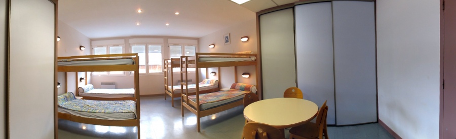 Autour d’un couloir central redessiné par un architecte d’intérieur pour rompre la rigueur d’un hébergement collectif, chaque gîte se répartit en chambres individuelles de 1 à plusieurs lits et en petits dortoirs agréablement meublés.