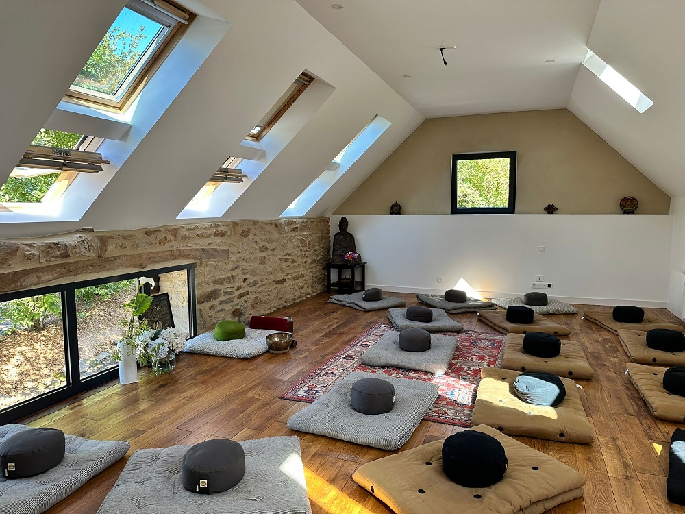 La salle de pratique : belle salle de pratique de 50m² fraichement rénovée accueille stages de bien-être et séminaires d'entreprise.