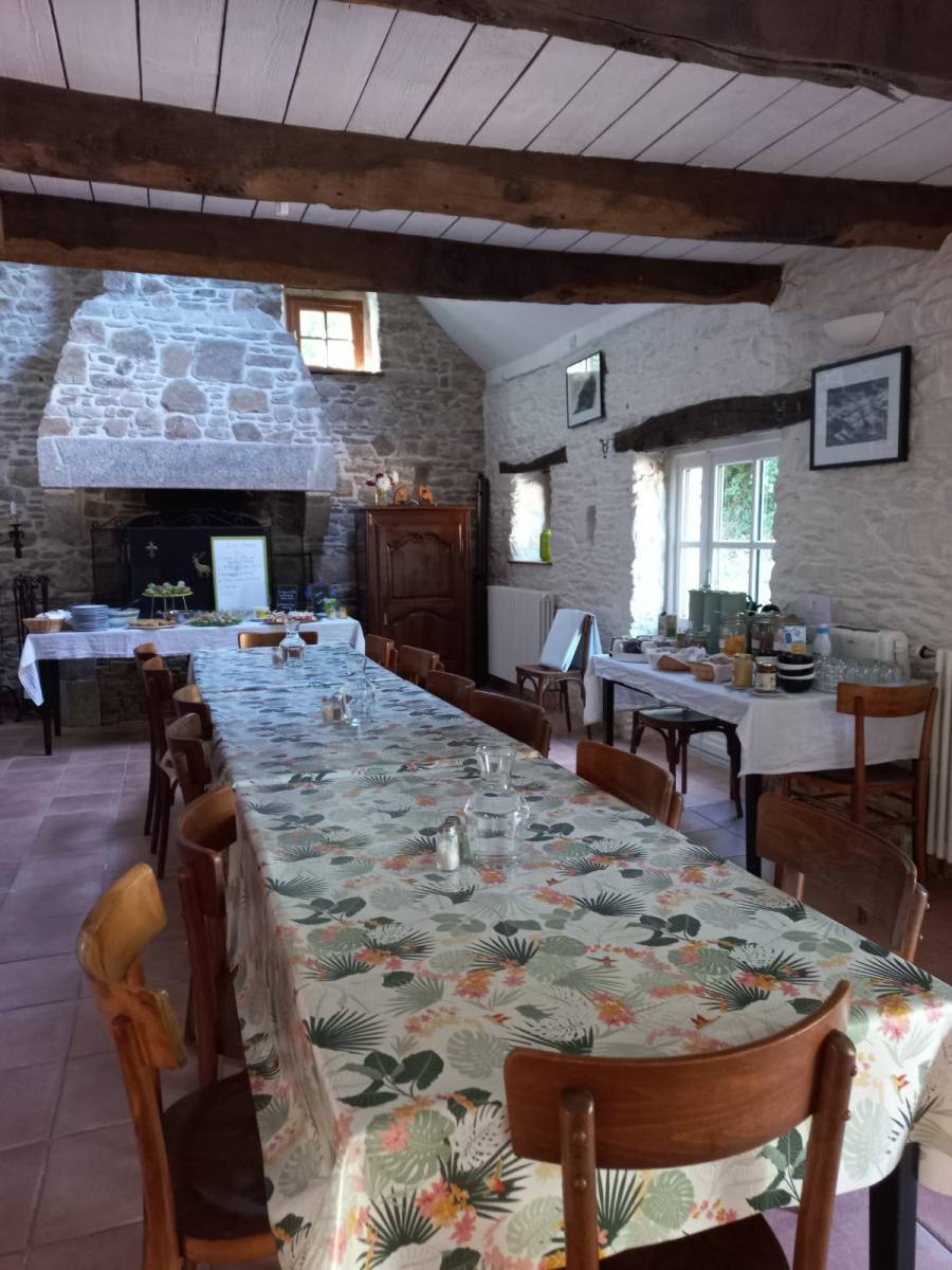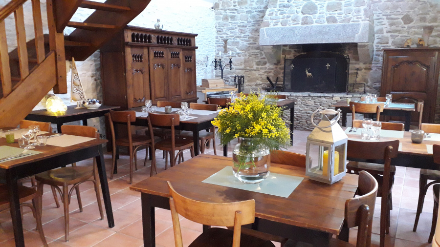 Une ancienne étable transformée en auberge, avec sa salle de restaurant pour 25 couverts et sa belle cheminée monumentale, sa cuisine pro toute équipée. Terrasse disponible avec chaises et tables. Boulodrome. En gestion libre. Possibilité de mise à disposition de traiteurs partenaires et chefs à domicile. (selon les goûts : tradi, bio, local, veggie)