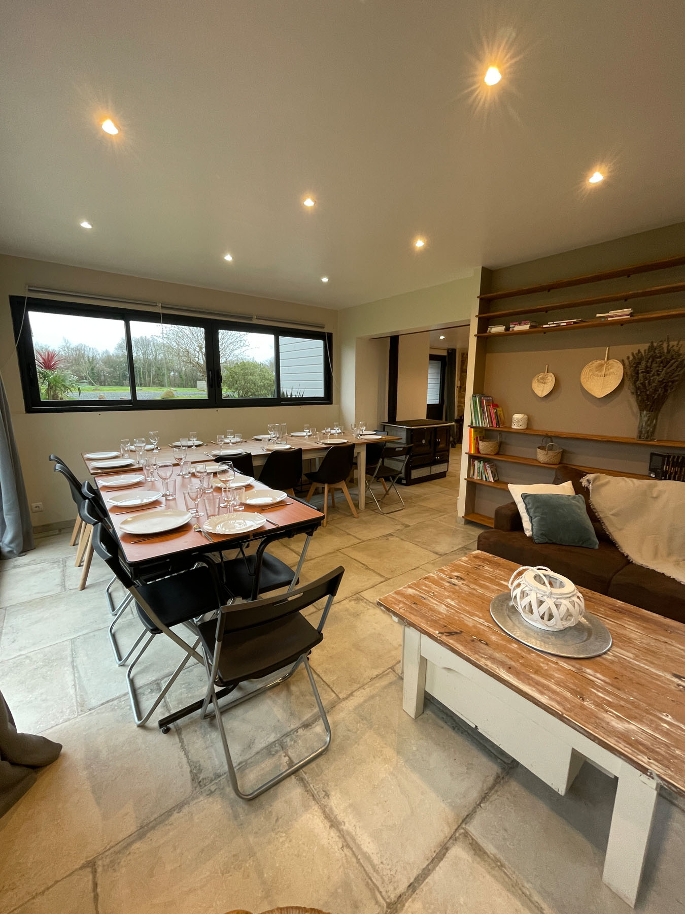 Une réunion de famille ou entre amis ? La longère très lumineuse a été pensée pour passer un séjour chaleureux et au calme. Le lieu est idéal pour vos rassemblement jusqu'à 20 personnes. Vous regroupez trois gîtes indépendants mais communiquant pour votre séjour au coeur d'un grand jardin avec une piscine extérieure chauffée, sous abri !