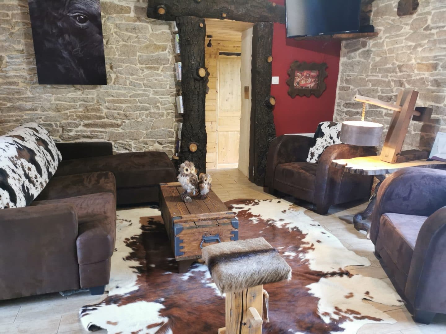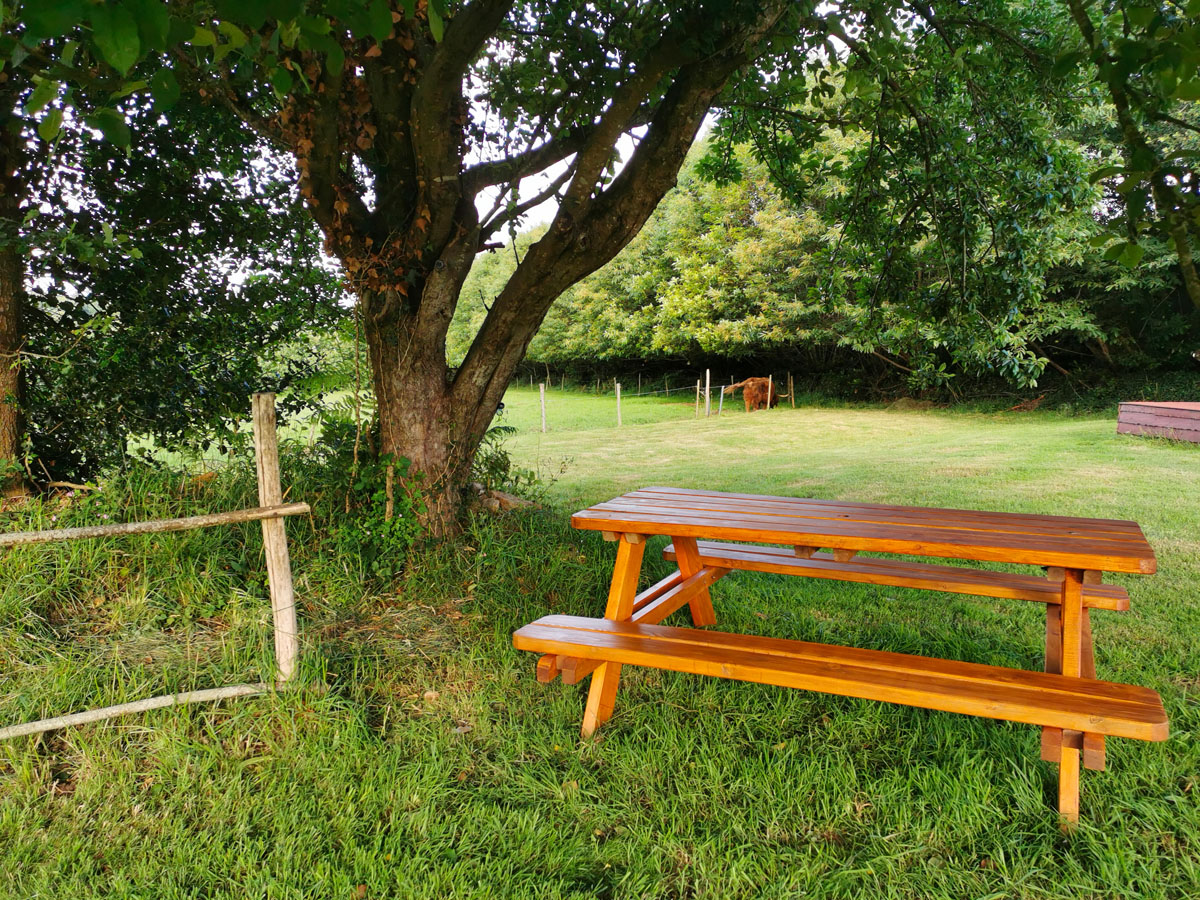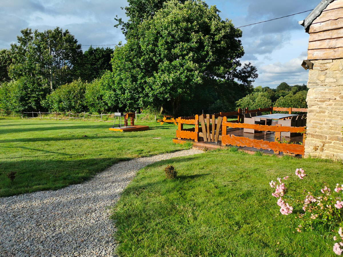 Le gite dispose de 2 salles de bain, avec 2 wc séparés, une cuisine très équipée, un salon avec accès sur une terrasse de 40M2 sans vis à vis avec vue sur le pré des chevaux, et une seconde terrasse avec adirodaks, vue sur le champs des vaches higland cattle.