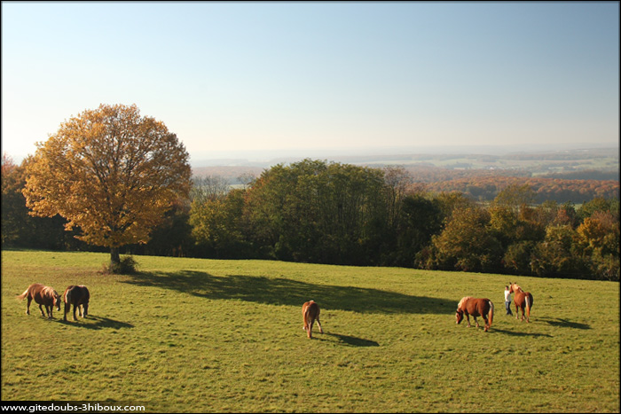 A pied, en VTT ou pourquoi pas en raquettes en hiver, depuis le gîte, vous montez à l’église, puis vous traversez un escarpement boisé et rocheux qui conduit « sur le Mont ». Le panorama qui s’offre à vous est à couper le souffle. Vous repérez à l’horizon, les Monts de Gy et les sommets arrondis des Vosges Saônoises vers le Ballon de Servance.