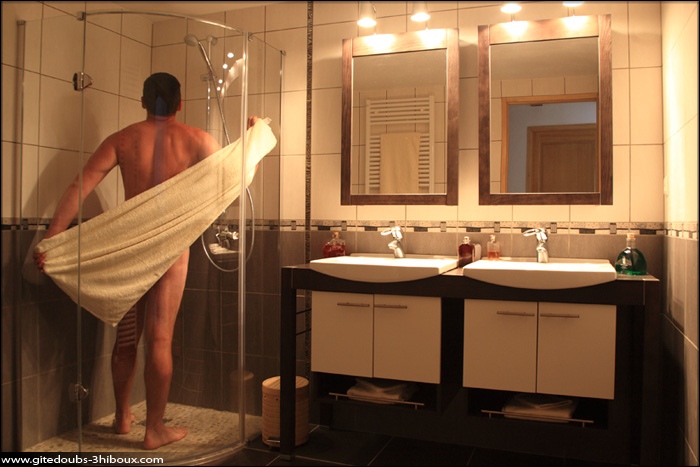 La salle de bain, aux lignes harmonieuses et contemporaines, dispose d’un meuble à doubles vasques au design très sobre et d’une douche à l’italienne. Si vos pieds sont fatigués et douloureux, rien de tel qu’une bonne douche avec des galets pour masser la voûte plantaire ; Vous allez ressentir très vite une profonde détente de tout le corps. Une baignoire pour bébé est à disposition dans le gîte. Les toilettes sont indépendantes et disposent d’un lave main.