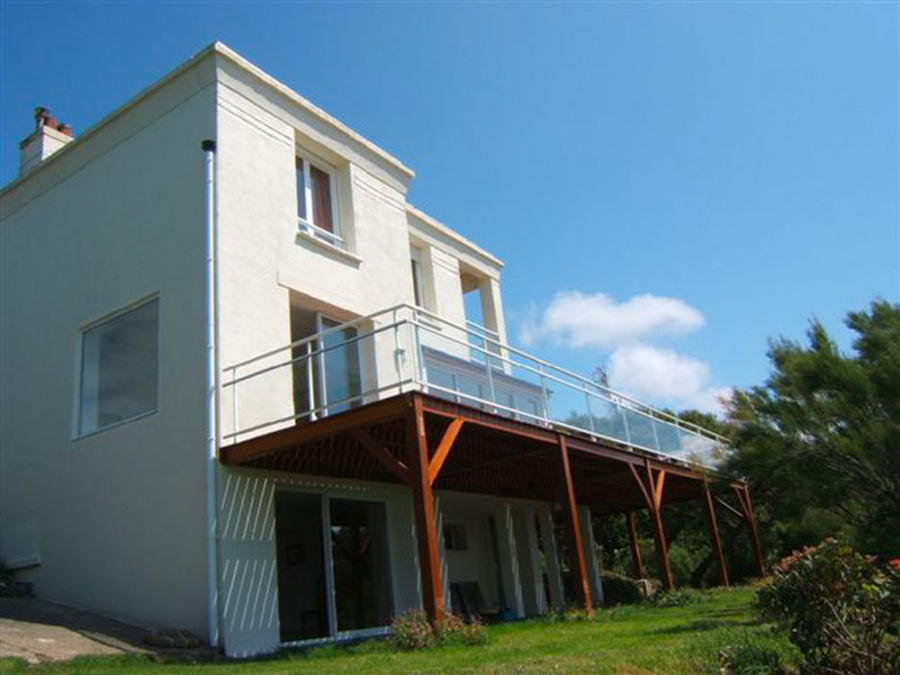 - Terrasse de 70m², Sud et Ouest avec vue panoramique sur mer, falaises et campagne
