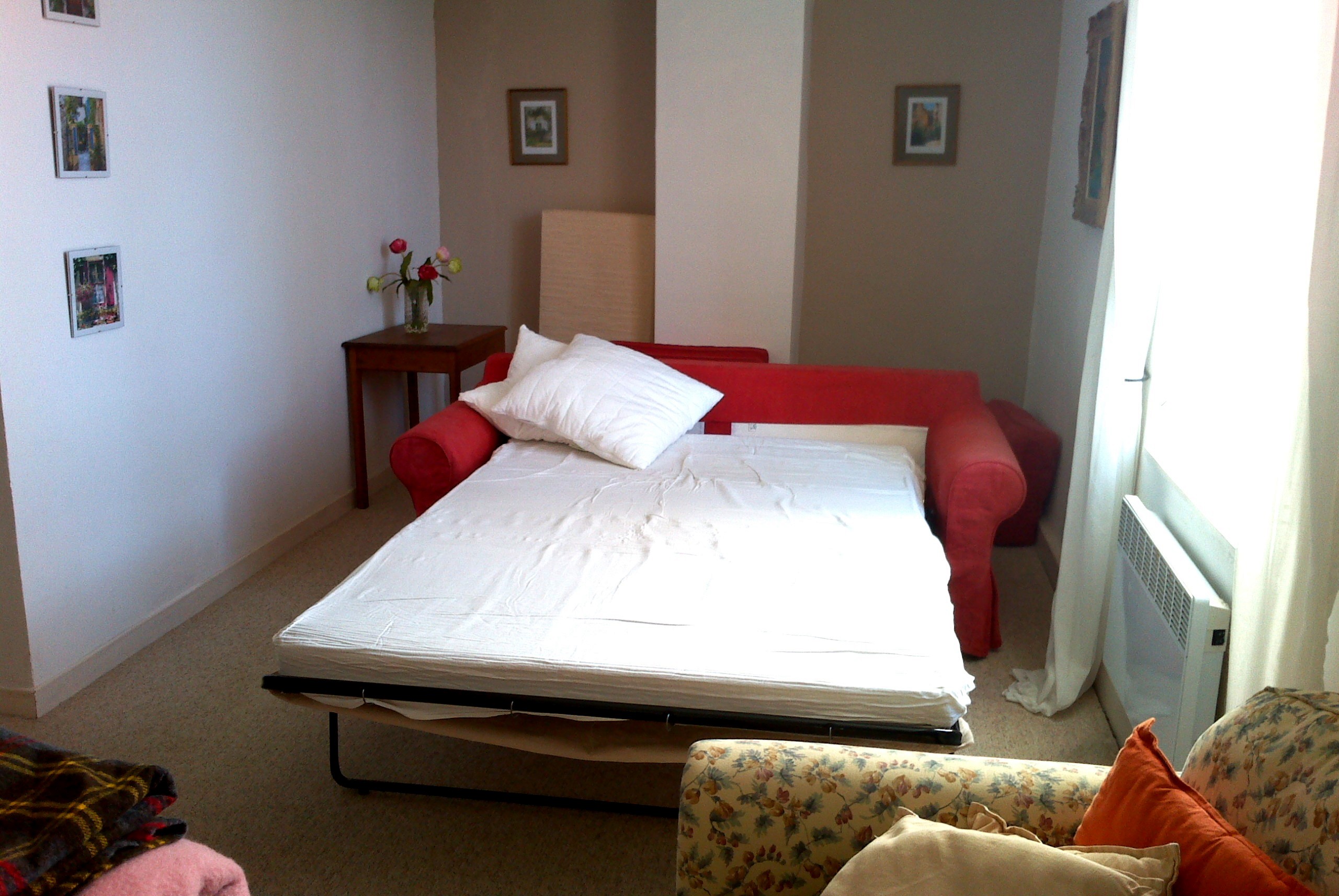 Salle de bain séparé. Coin cuisine, coin salon et espace chambre lit 2 personnes