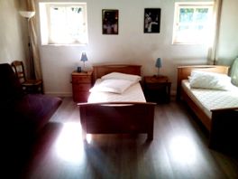 personnes qui se compose de cuisine-espace de vie avec 2 fauteuils, salon avec de confortables canapé, canapé-lit 2 pers. et fauteuils, 2 grandes chambres avec 2 salles de douche lavabo toilette, lave-linge, lave vaisselle. (cuisinière avec grill, réfrigérateur, bouilloire, cafetière et grille-pain.
