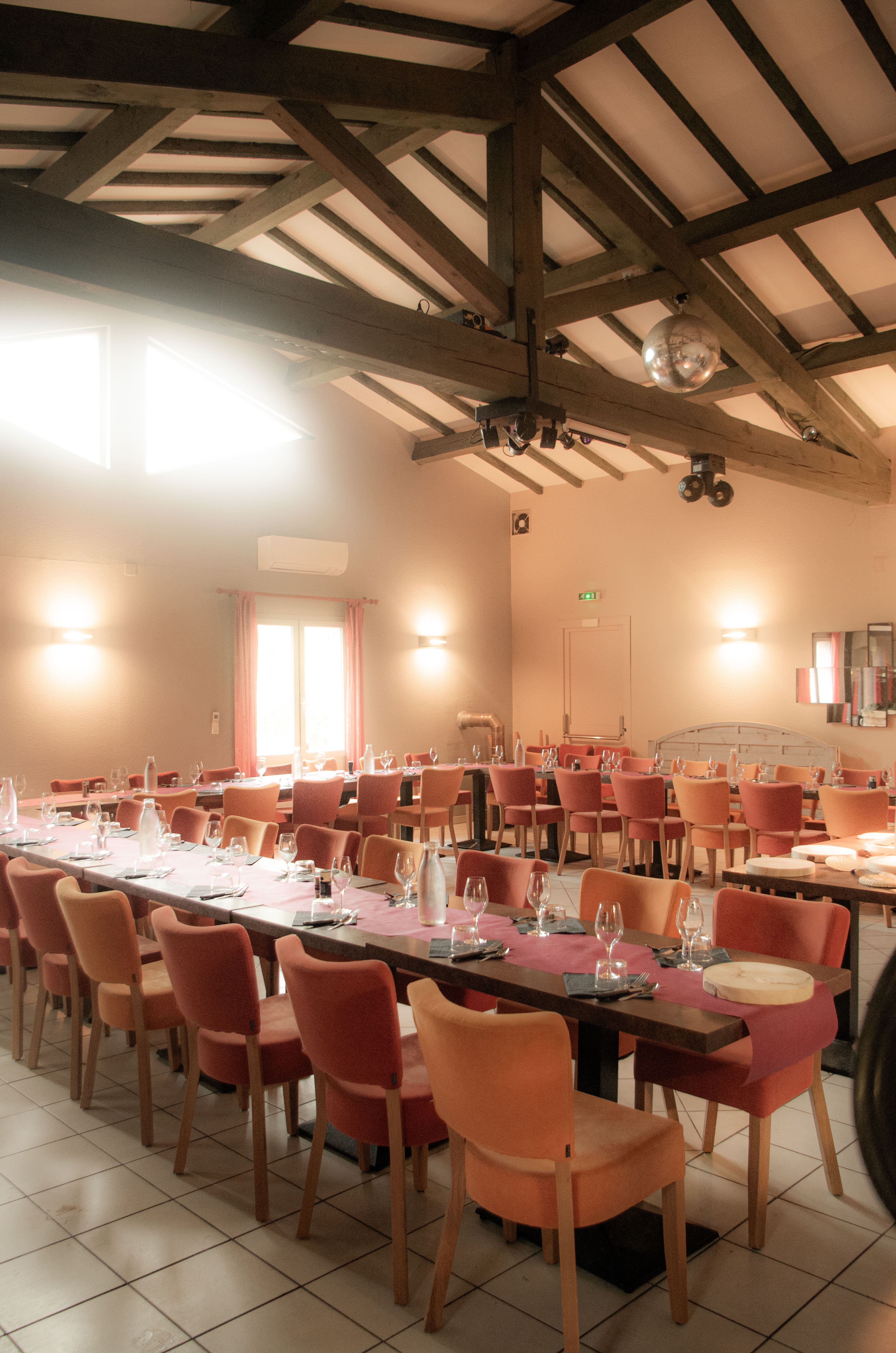 Nous disposons d'une salle intérieure pouvant accueillir 60 px en place assise ainsi que de nombreux espaces extérieurs couverts et non couverts