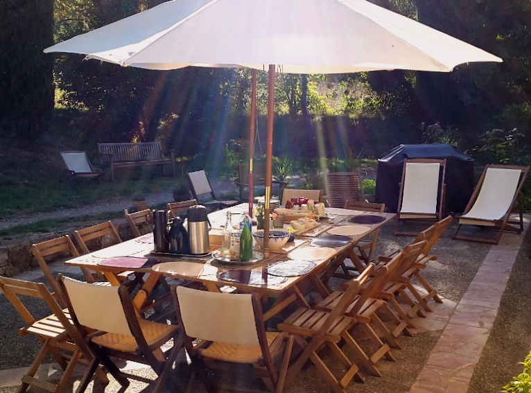 A disposition un grand parc à l'ombre des platanes, un verger, terrasse, grande piscine (15m x 6m) et sentiers dans les hauteurs du Domaine, avec vue sur la Chaîne de Pyrénées et le Pic de Bugarach.