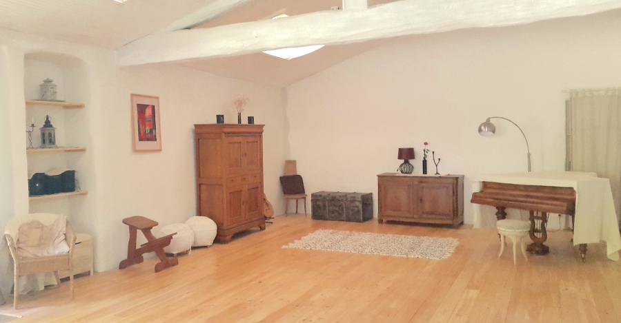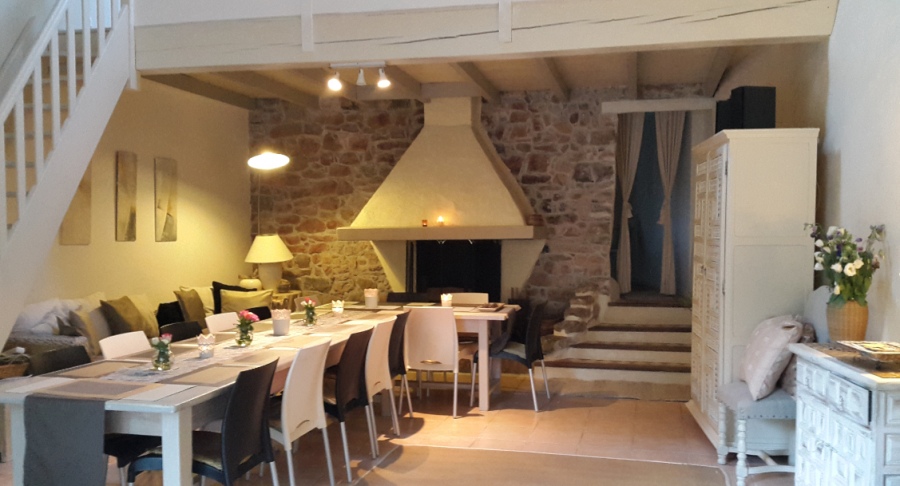 Nous disposons d'une belle salle lumineuse avec poutres apparentes pour accueillir jusqu'à 100 personnes, pour mariages, réceptions, séminaires, etc.