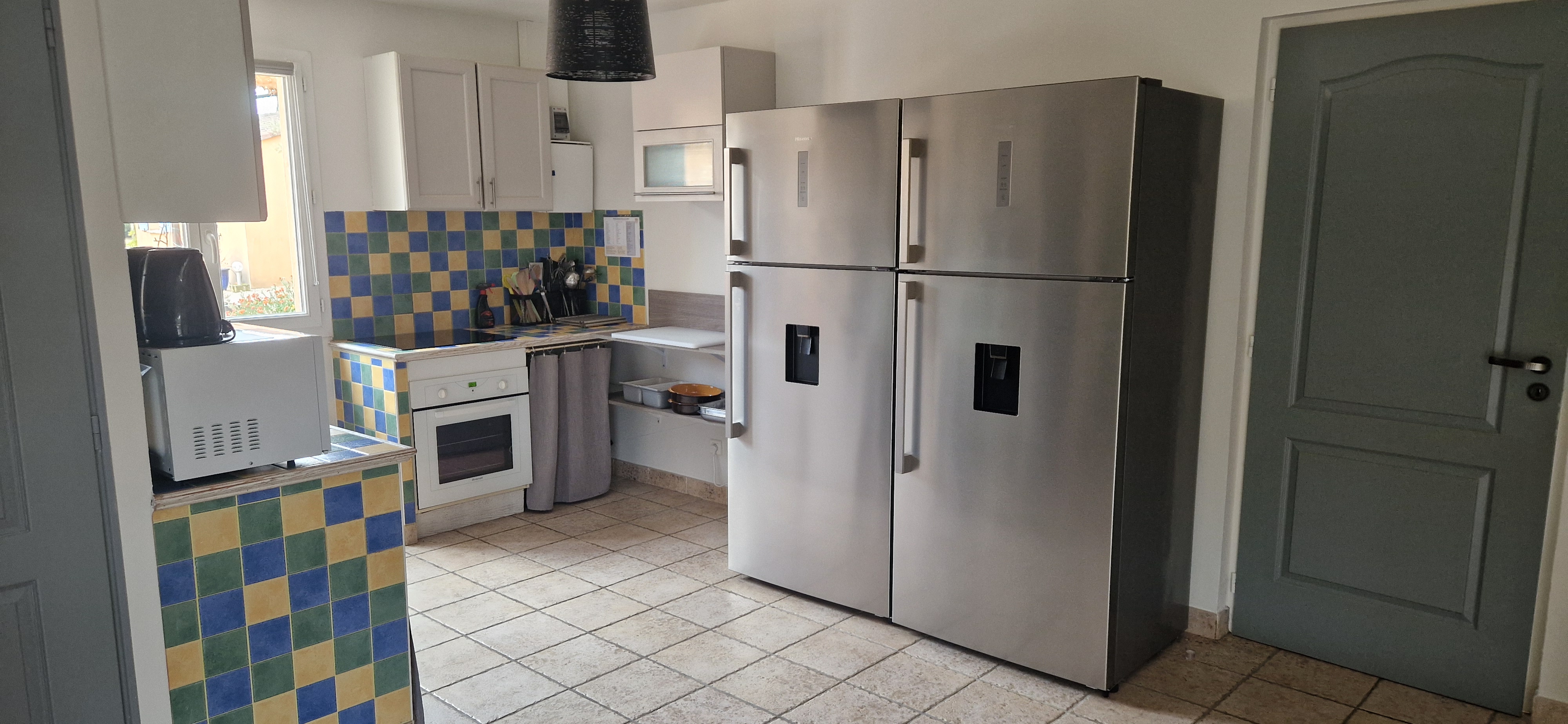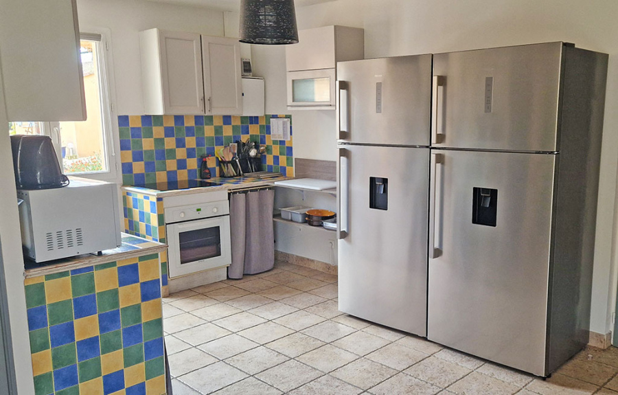 La cuisine (non professionnelle) se situe dans le gîte Luberon attenant à la salle. Ce gîte possède une la vaisselle et du matériel de cuisson. elle est parfaitement adaptée à la préparation et la conservation de tous vos mets, chauds et froids. Elle est équipée d'un Four traditionnel, d'une plaque induction 3 feux, lave vaisselle, 2 réfrigérateurs 2 portes de 552l à froid ventilé (réfrigérateur 433l et congélateur 119l) et évier double bac, deux cafetières classique 15 tasses et 2 bouilloires.