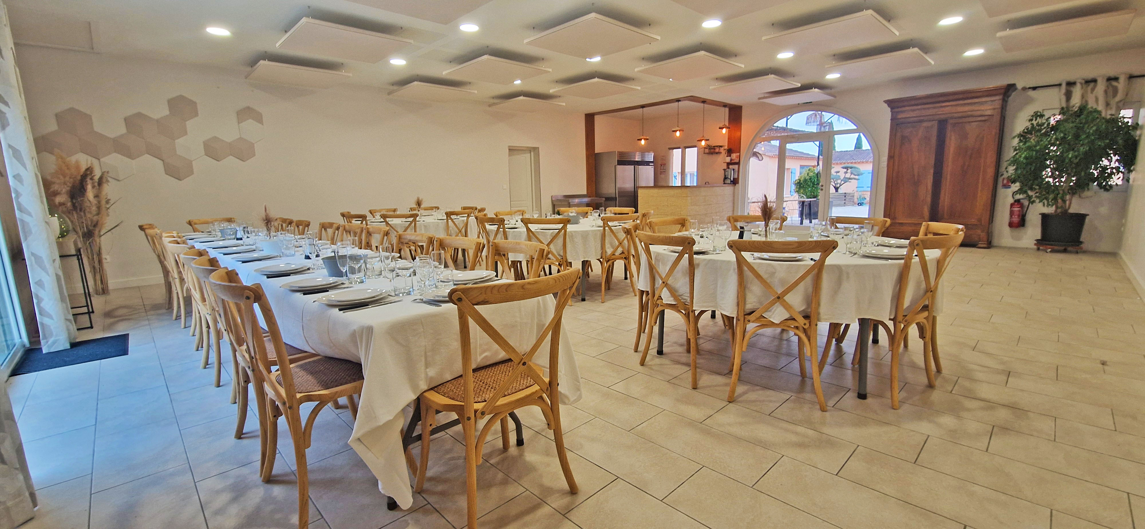 Le concept du Mas des Sagnes permettra à l’ensemble de vos convives de loger sur place et ainsi de profiter en toute sécurité d'un moment privilégié et de prendre tous vos repas en commun du petit déjeuner au dîner.