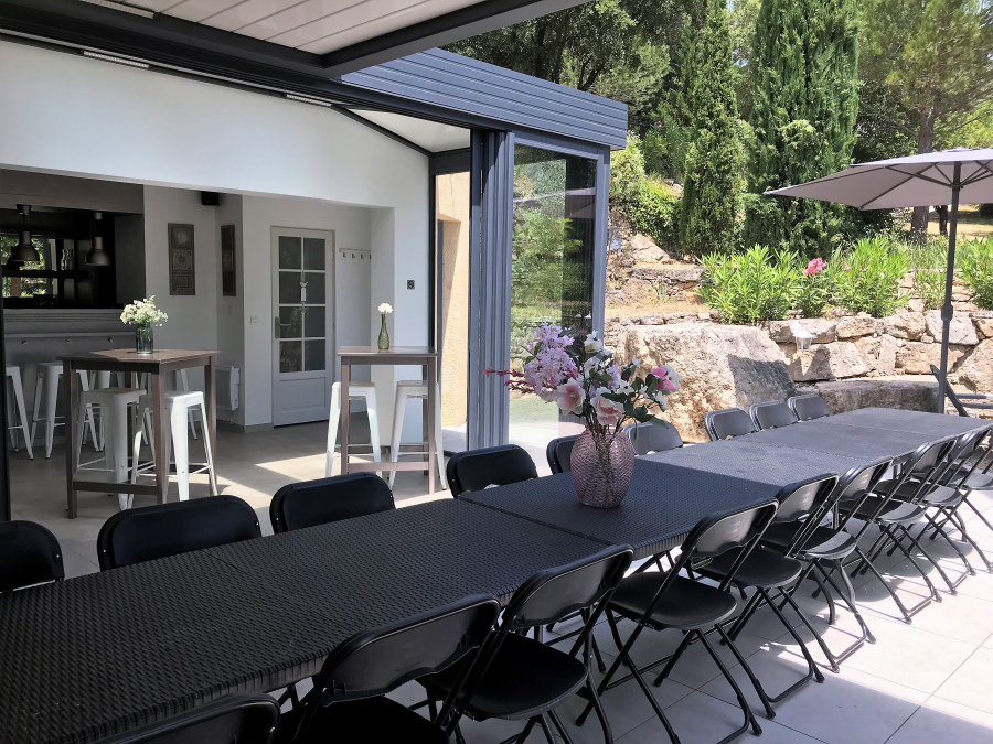 Nous vous proposons 5 gîtes, 3 lodges et une salle commune, situés au calme et en pleine nature sur un magnifique domaine méditerranéen, à 2 km des commerces, proche du Lac du Salagou entre la Méditerranée et les Causses du Larzac. Une base idéale pour organiser vos cousinades, réunions, sorties sportives (vélo route, VTT, randonnées à pied) pour déguster les saveurs des vins, olives et fromages mais aussi pour découvrir des nombreux sites naturels et culturels remarquables. Dans la salle commune vous pouvez vous réunir, prendre des repas ensemble ou fêter un événement. Les hébergements sont confortables et bien équipés où vous pouvez retrouver votre intimité également. Pour les repas nous pouvons vous proposer des bons traiteurs locaux. Sinon, la salle commune dispose d'une petite cuisine ouverte où vous pouvez préparer les repas vous-même. Pour vous amuser sur place, il y a des jeux pour petits et grands: une belle espace piscine (selon saison), un terrain de boules, un trampoline, un billard, une table pingpong, un babyfoot, un terrain de jeux pour les tout petits et un salon de massage. L’accueil de groupe se fait toute l’année sauf en juillet et août.