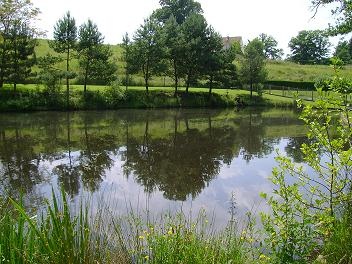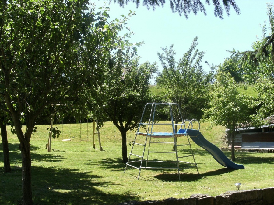 Jardin de 4000m² avec étang (carpe, gardon, truite), piscine chauffée (8mx4m), avec barbecue et pour les enfants balançoires et toboggan