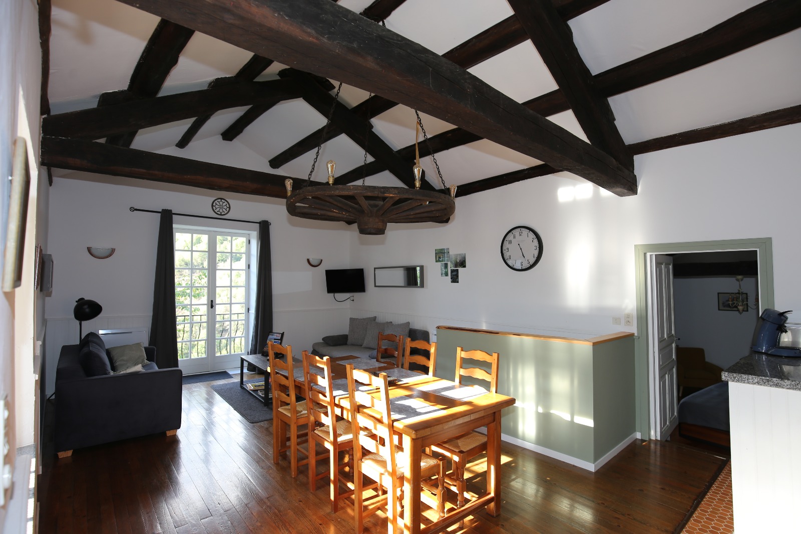 le séjour de la maison "le cerisier" est entièrement aménagé pour recevoir jusqu à 24 personnes. Cuisine et équipements adaptés. La grande terrasse aménagée accueille également avec facilités votre groupe.