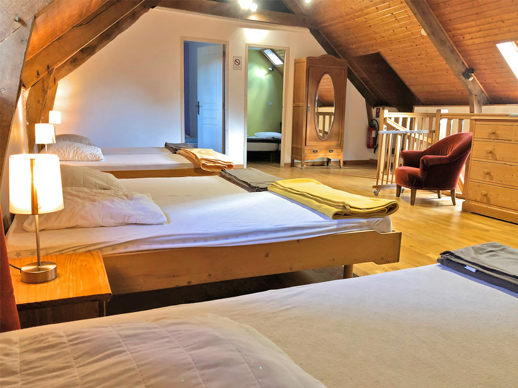 Détail couchage : 4 lits doucles, 16 lits simples, 1 lit superposé, 6 canapés convertibles et 3 lits bébé