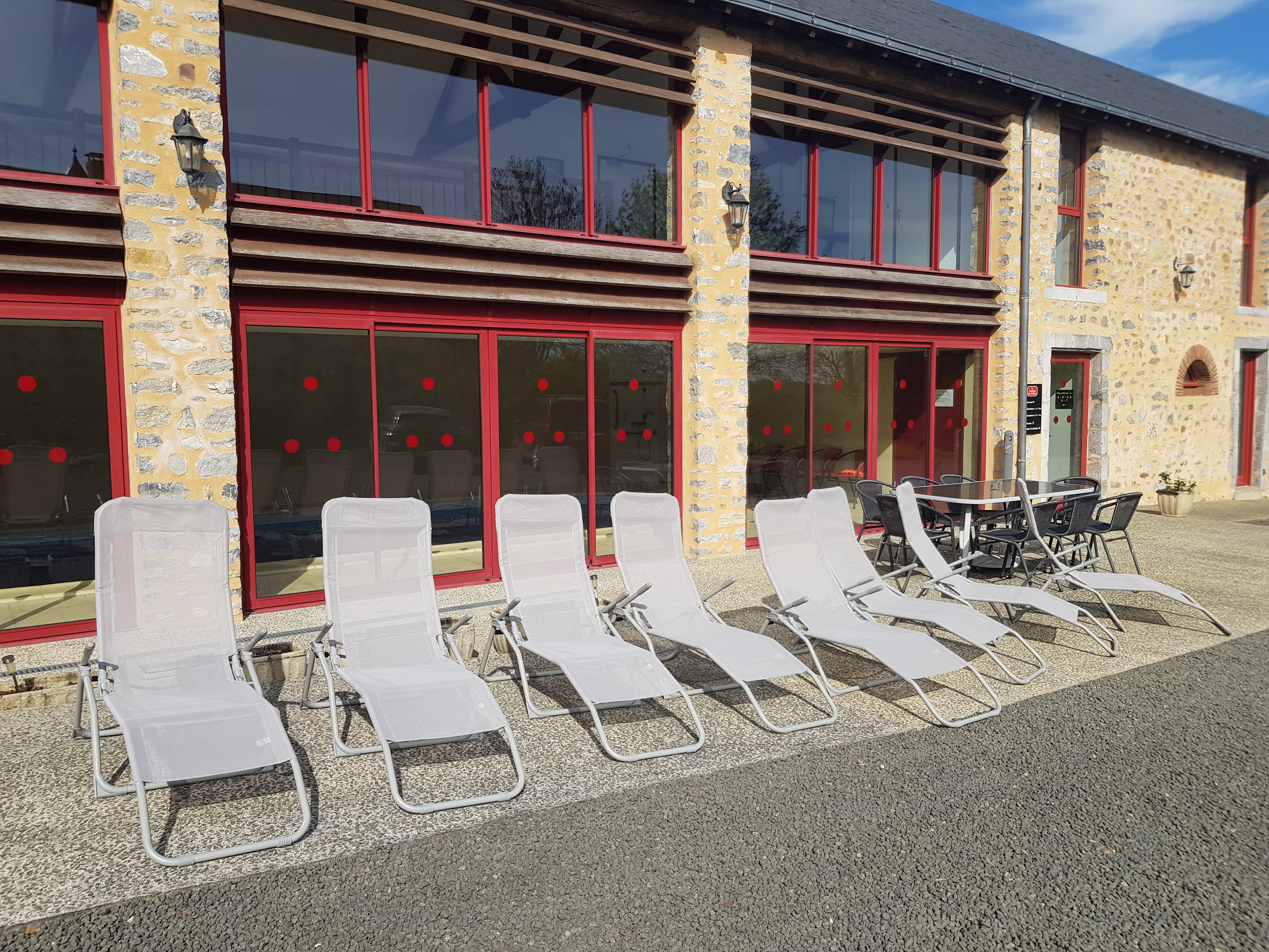 Dans les 2 bâtiments du gîte vous trouverez les 8 grandes chambres (dont une adaptée aux handicapés) plus un grand salon (TV, hi-fi, jeux de société, un piano), le bar (frigo, micro-onde, verres), la salle à manger avec sa machine Nespresso et ses dosettes disponible tout la journée, une terrasse, un terrain de pétanque, la piscine d'intérieur, une salle fitness, et une grande salle d'activités avec la table de ping-pong et baby-foot (cette salle est transformable pour séminaires ou soirées dansantes), Wi-Fi gratuit plus une cuisine pro à votre disposition en gestion libre. Label Tourisme & Handicap tous handicaps 2022. Pour nos notes d'avis et tous nos tarifs, merci de voir notre propre site https://www.leshallais.fr.