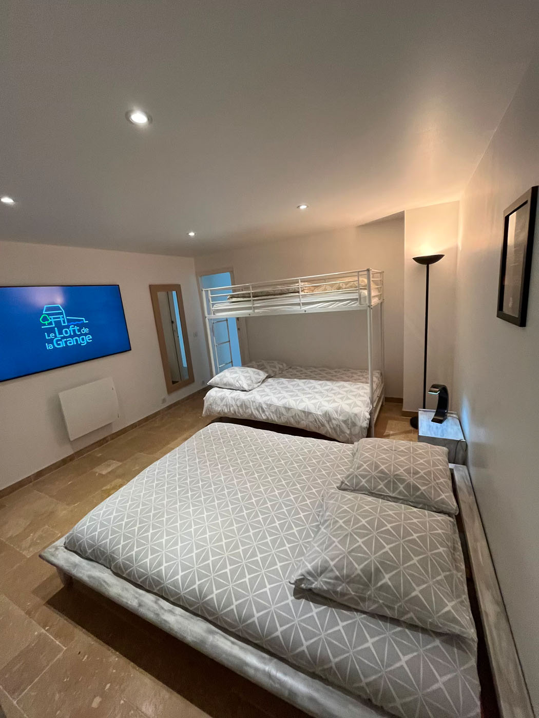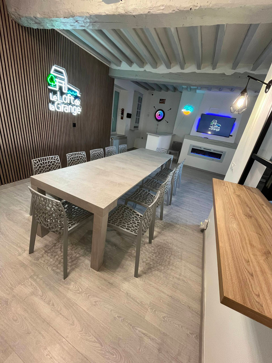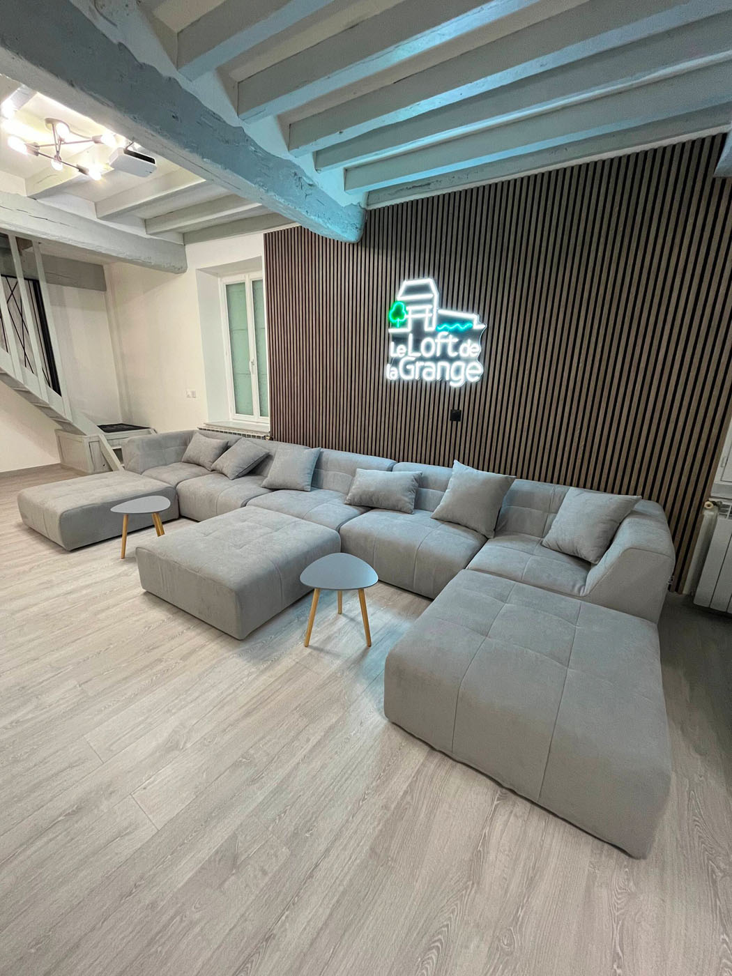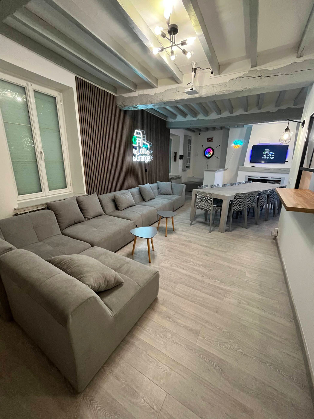 Dans un petit village de campagne tranquille, nous proposons une magnifique grange hi-tech, rénovée en loft de 150m2 avec piscine couverte attenante privatisée, chauffée à 32° minimum + jacuzzi et sauna.