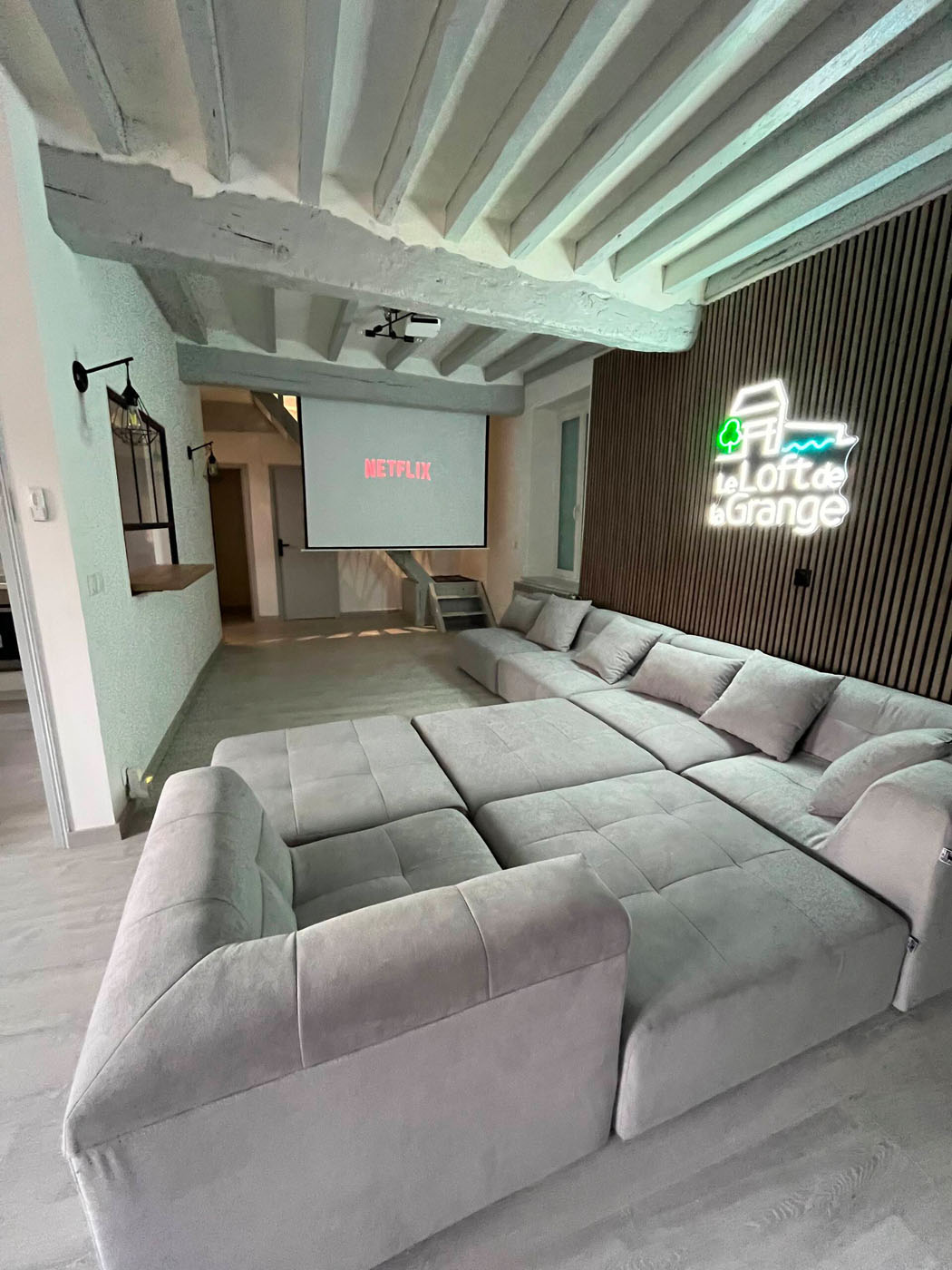 Maison totalement rénovée avec gout, home cinéma sur écran géant et canapé king size pour 15 personnes.