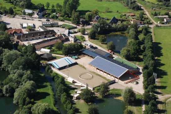 - Du centre équestre qui compte 70 chevaux et poneys, 2 manèges couverts, 1 carrière