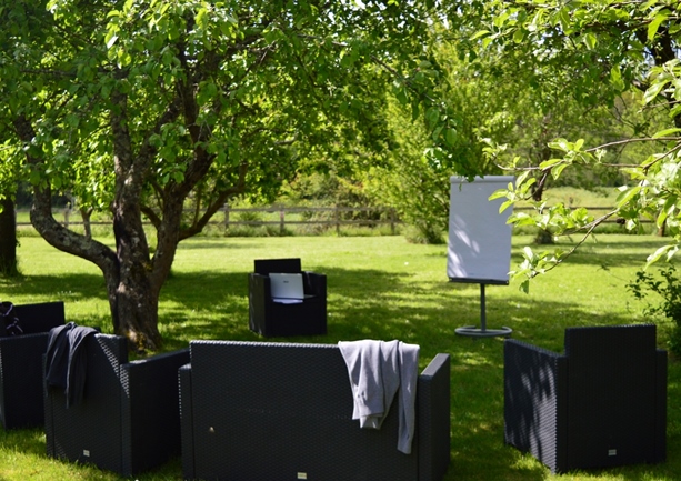 Dans un écrin de verdure de 10 Ha, 4 gîtes de 4,4,6,8 personnes regroupés dans une ancienne ferme du XIVème, et 2 tentes lodges safari de 5 personnes ouvertes d'avril à fin septembre, vous permettent d'organiser vos évènements familiaux, professionnels, en toute décontraction. L'espace commun situé au milieu du domaine dispose d'une salle de 50 m2 (tables, chaises, vaisselle), d'un salon de 40 m2, d'une cuisine semi-pro. En saison, un barnum est installé devant cet espace et permet de prendre vos repas en extérieur ou de réaliser vos réceptions. D'autres structures éphémères sont possibles sur demande. Nous disposons de prestataires (traiteur, fleuriste, célébrants,...) pour l'organisation de vos réceptions.