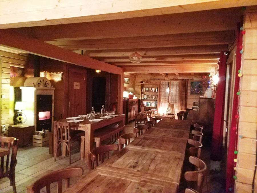 Nous proposons un hébergement de grand confort en chambres boisées et colorées de 2 à 8 personnes avec salle de bain ainsi qu'une restauration soignée midi & soir à base de produits locaux et/ou bio. Notre terrasse offre une vue exceptionnelle sur les montagnes alentour (la nature est bien faite !).