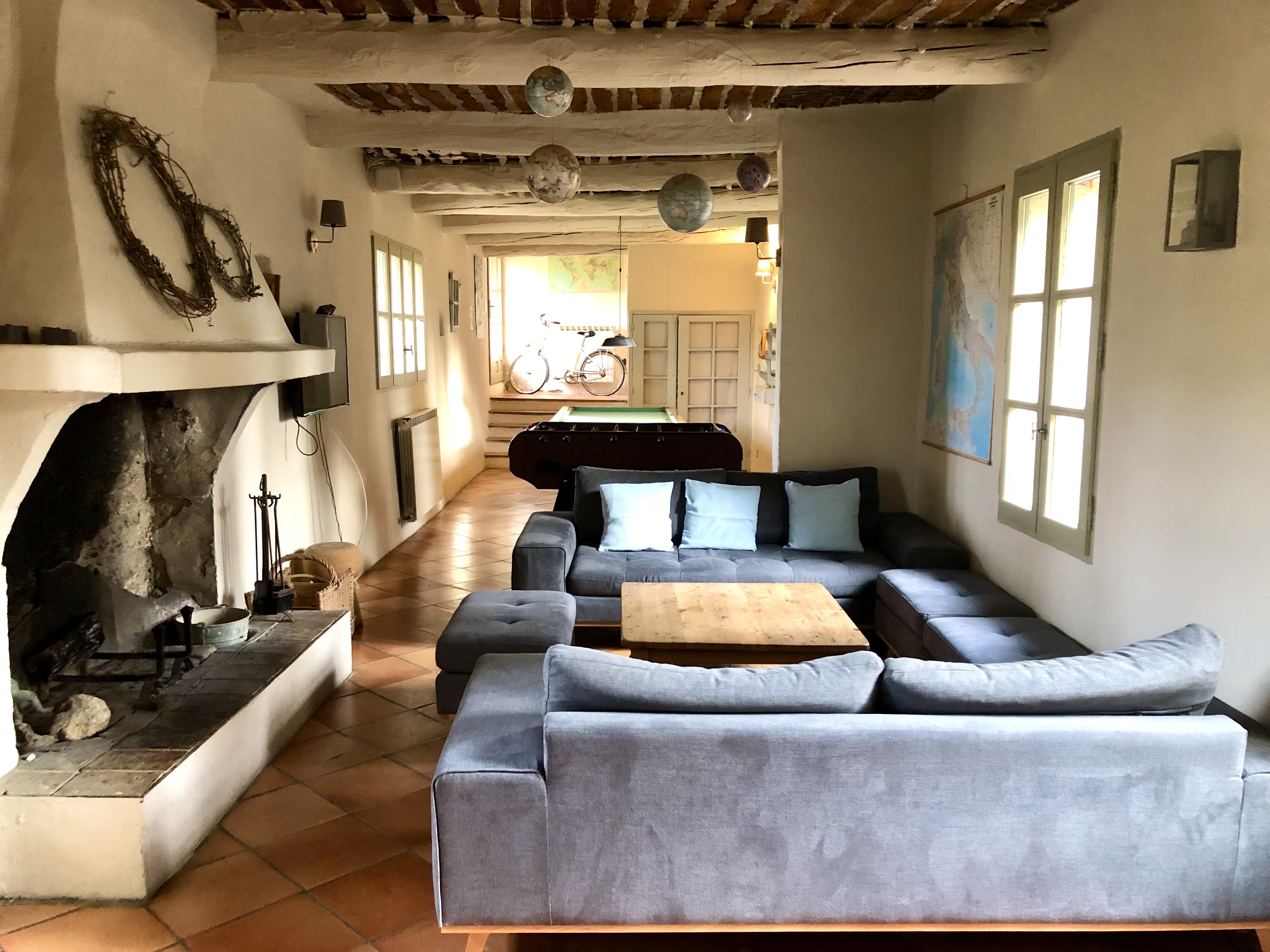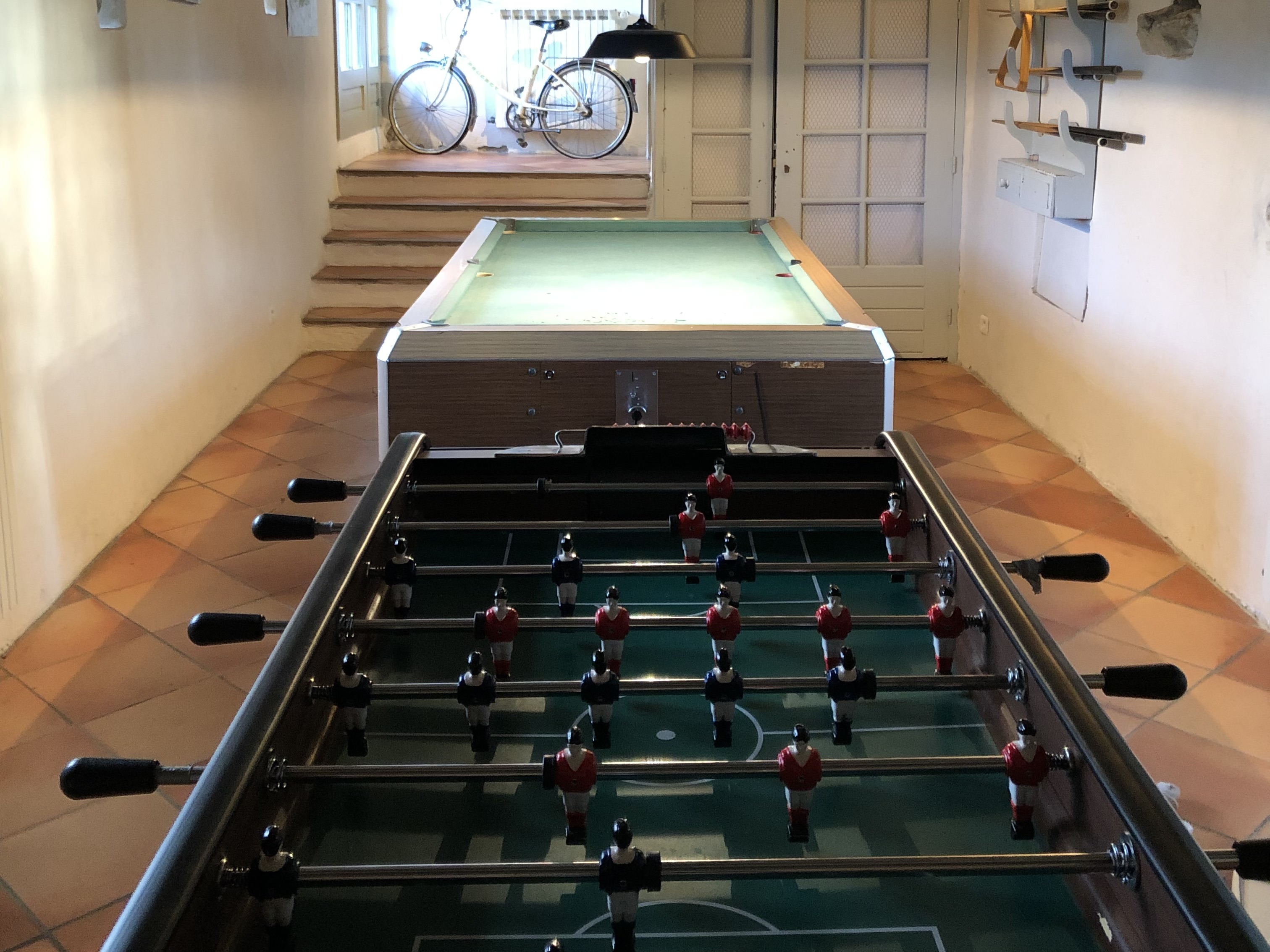 Gite de groupe avec piscine privée sécurisée qui comporte 6 chambres et 5 salles de bain (chacune avec toilettes). Grande cusine bien équipée avec très longue table et Salon avec coin canapés devant la cheminée. Dans le Salon, on trouve un billard, un billard, un baby-foot et un coin jeux pour les enfants. Des livres, des jeux de société et des jouets sont à disposition. Ces pièces à vivre sont réparties autour d'une cour qui se trouve au centre de la maison. Elle est ombragée et à l'abri du vent. Dans le très grand jardin, on trouve l'espace piscine avec des tables et des bains de soleil. Un terrain de pétanque éclairé guinguette et des boules permettent des parties animées. Il y a aussi une table de ping pong, une Chapelle et un bassin à poissons.