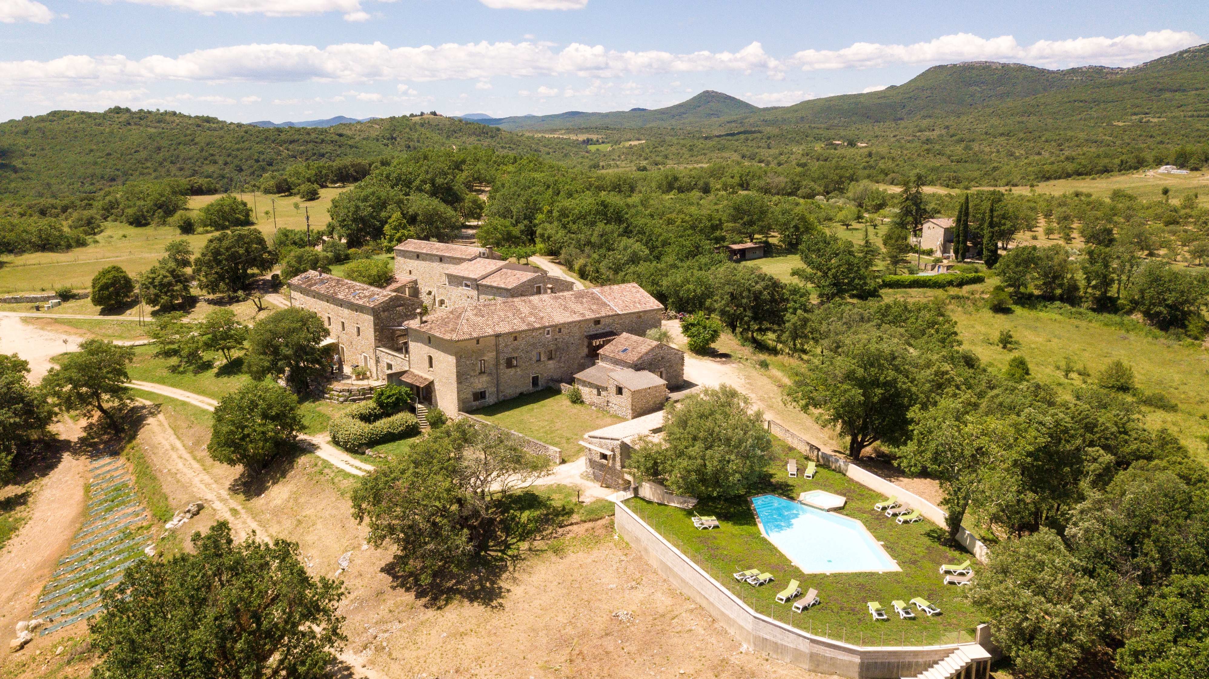 Située sur les hauteurs d'une forêt de pins, à 12 km de la grotte Chauvet et 13 km de l'Aven d' Orgnac, cette vieille ferme est rénovée en plusieurs hébergements de caractère idéalement agencés avec des portes secrètes pour les groupes jusqu’à 45 personnes avec une cuisine professionnelle mise à disposition pour la gestion libre.