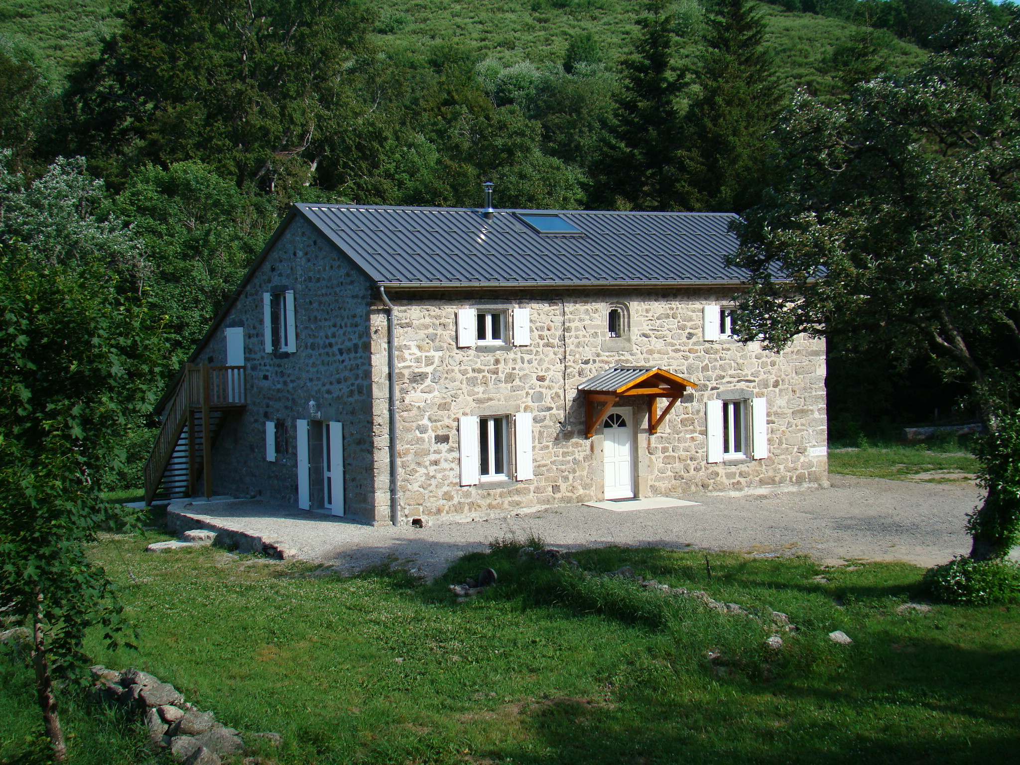 Situé à 1200 mètres d’altitude, le bâtiment a été rénové en totalité. De grande capacité (jusqu’à 15 places), il est adapté à des réunions de famille ou d’amis à centres d’intérêts multiples : repos pour les uns, activités de pleine nature pour les autres. Tout en pierre, avec des murs épais, le bâtiment a du caractère. A noter la fraîcheur intérieure même en période estivale et une belle luminosité. Au rez-de-chaussée, un salon vouté en pierre et un poêle alsacien donne sur une salle à manger conviviale. Vous trouverez également une cuisine équipée, des sanitaires et une chambre accessible PMR. A l’étage, 4 grandes chambres sont équipées de sanitaires. La maison est raccordée au réseau de distribution d’eau et au réseau public d’électricité. Un barbecue en pierre se trouve à l’extérieur.