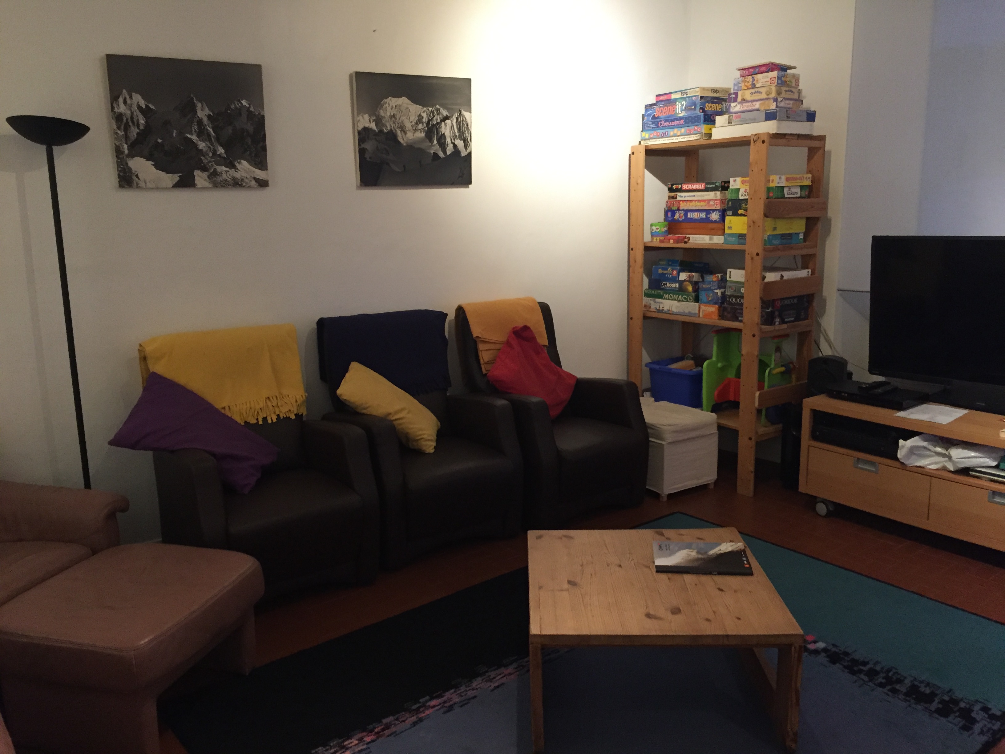 Un endroit bien au calme où les enfants et parents peuvent trouver repos et confort. Cette pièce n’est autre que le salon où des livres, des jeux de sociétés et de quoi mettre un DVD et de la musique attendent petits et grands.