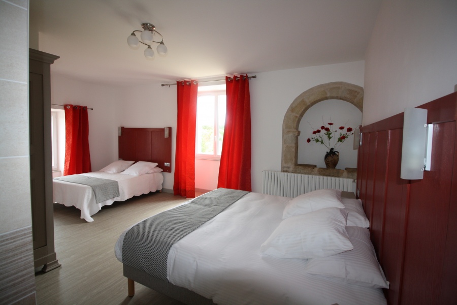 N° 11 chambre avec un lit de 180, et 2 lits de 90, une douche, WC, Lavabo