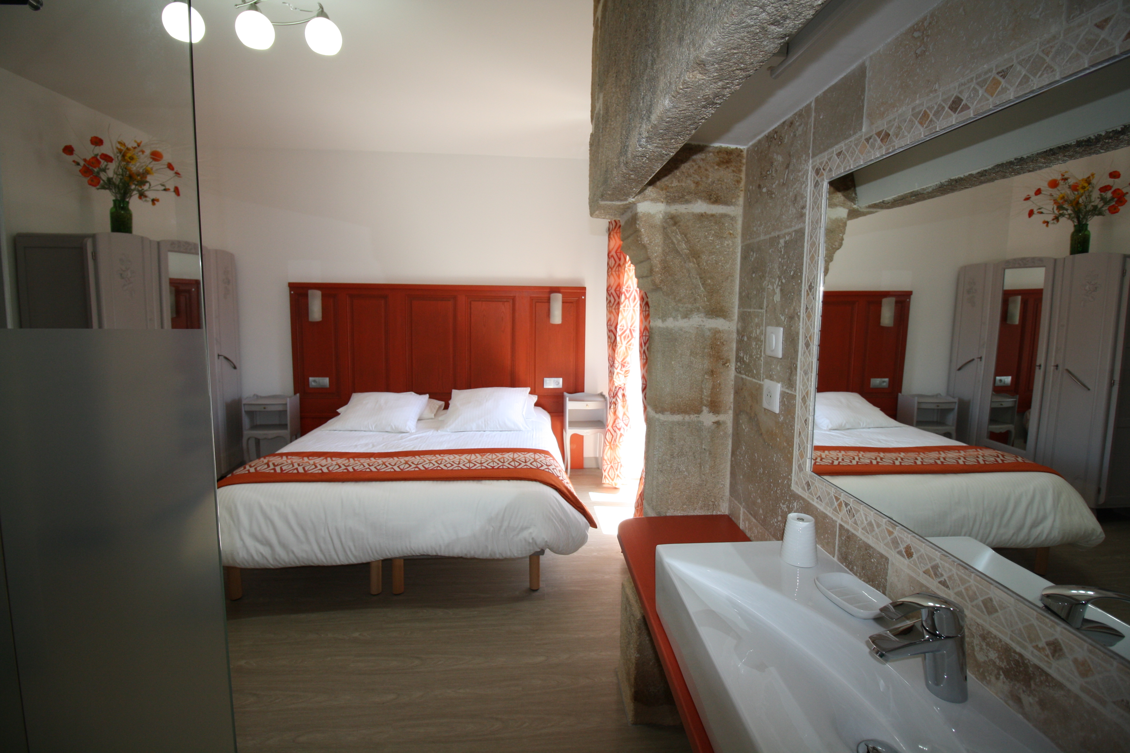 N° 12 chambre avec un lit de 180, et 1 lit de 140, une douche, WC, Lavabo